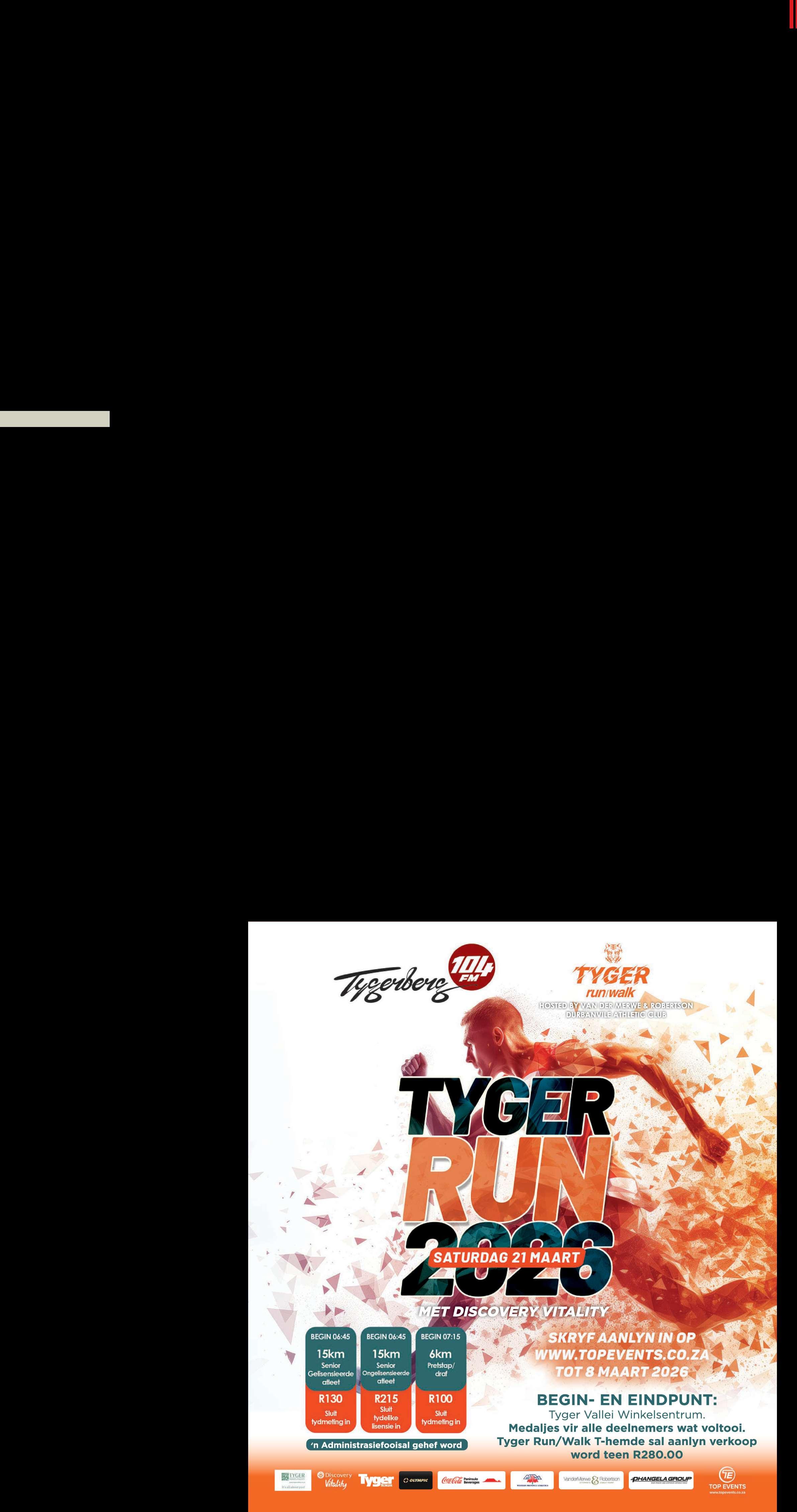 . ´n Biddagvir Vroue met Lizette vanRensburg vind op Vrydag 6Maart by Trans-50 Panorama Palms-aftreeoordplaas.Die oord is geleëby66Uys Krige-rylaaninPanorama.Die geleentheid is gratis en begin om 10:00.Belangstellendes hoefnet hul naam, vanentelefoonnommer aanontvangsdeur te gee. Skakel 021930 6035