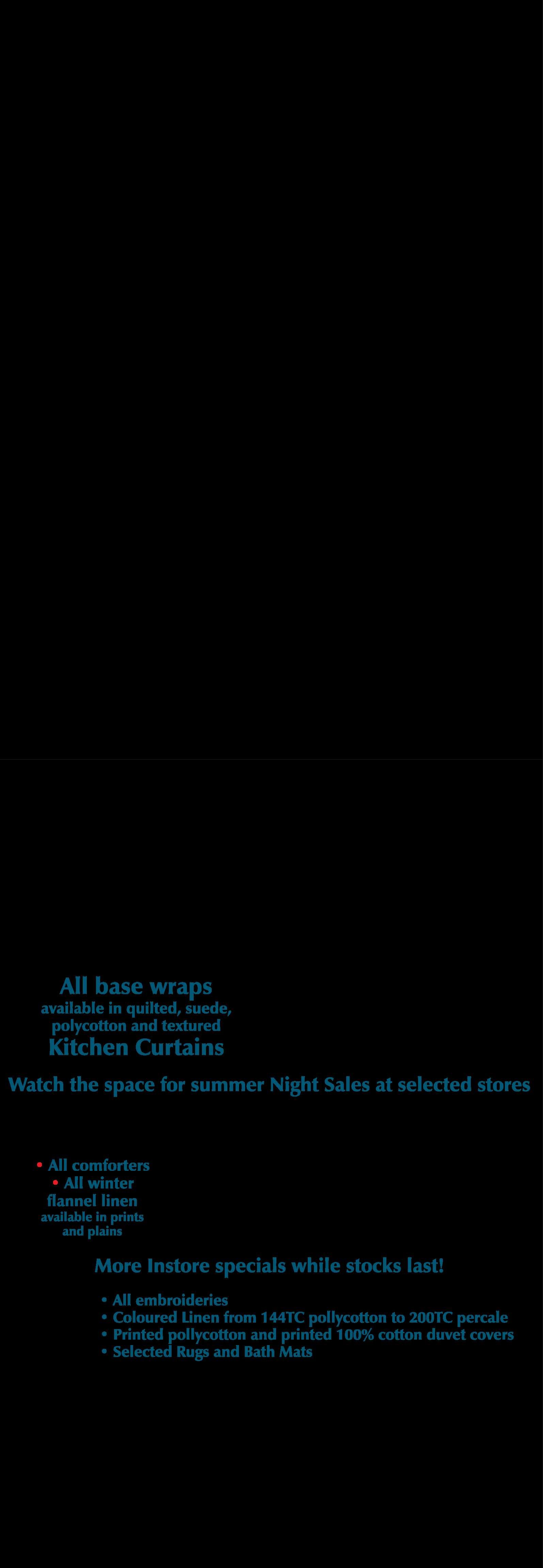 . TheDurbanville CraftMarketwillpresent a charitymarket, TheGypsy Night Market, from 17:00 to 21:00,weather and wind permitting, at 5Louw Street (cornerofLouw and Hafele Street,behind the police station). Thebest-dressed “gypsy”visitor canwin aR300 shopping voucher to redeem at the market.Entranceisfreeand pets areabsolutely welcome. Contact Durbanville CraftMarketon066 0597251orbyemail to durbanvillecraftmarket@ gmail.comwithenquiries.