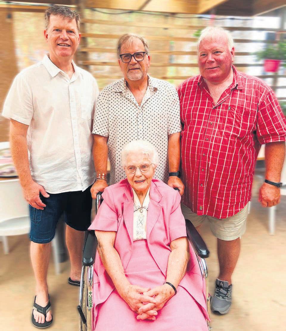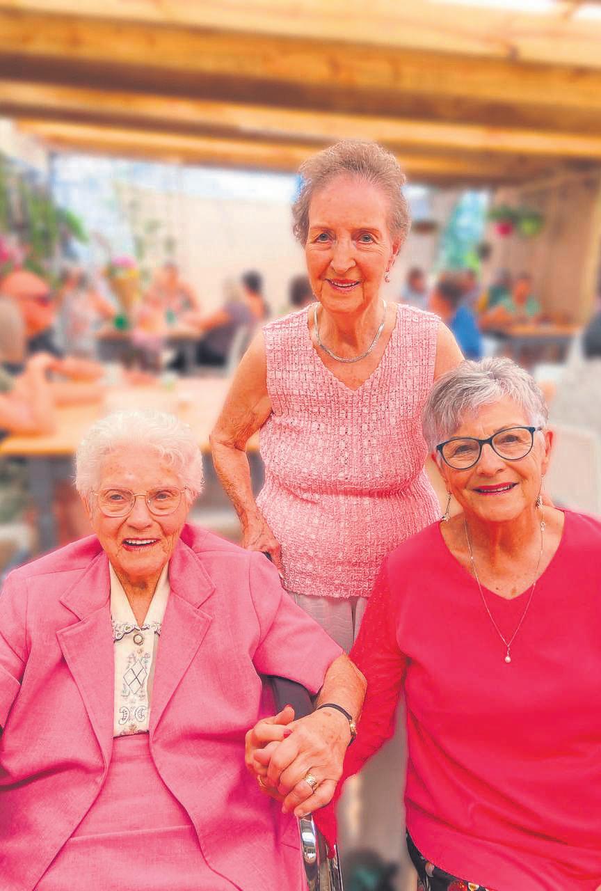 AlettaLouisa(Lettie) du Preez,inwoner vanAandmymering Tehuisvir OuerPersone op Kariega, het onlangs haar95ste verjaardaggevier. Sy is op 31 Januarie 1931gebore.Indie eerste foto word sy omring deur haar drieseuns-van linksnaregs: Jaco, Leon en Heinrich In dietweede foto is Lettie saam met haarsusters,Martha du Preez (90) en Cornelia Greyling (84).Lettie is die trotsematriarg van ‘n groot familiewat sewe kleinkinders en agtagterkleinkindersinsluit FOTO’S:VERSKAF