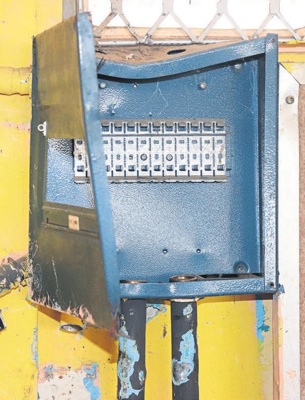 Oneofthe damaged switch boards at theschool.