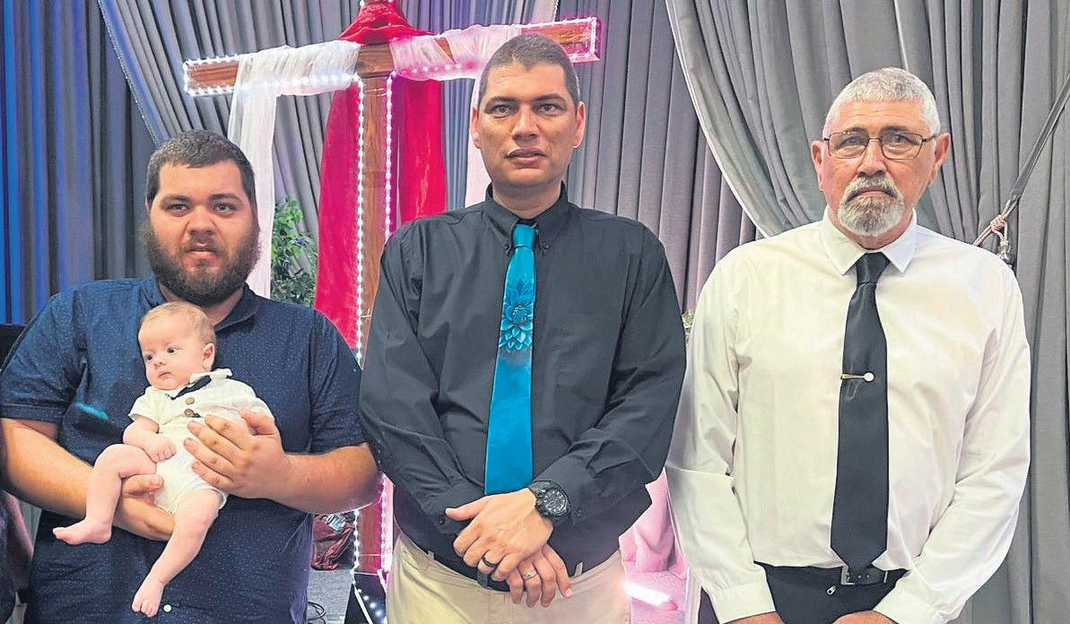Sondag, 1Februarie was ’n besonders spesiale dagvir die Lyons-familietoe vier geslagte saam was virbabaLuandré Lyons (drie maande) se inseëning. Pappa Lee-André Lyons (22), oupaLionelLyons(42), oupa-groot Deon Lyons (65) en die kleintjiehet met trots saambydie AGS Lofoord oorkant WillowdamopKariega gestaan. Luandré is op 10 November 2025 op 34 weke gebore. Hoewel dokters verwag het dat hy weke in die neonatale intensiewe sorgeenheid sou deurbring, is hy en sy mamma, ChloéPotgieter, na slegsdrie daeontslaan. FOTO’S: VERSKA