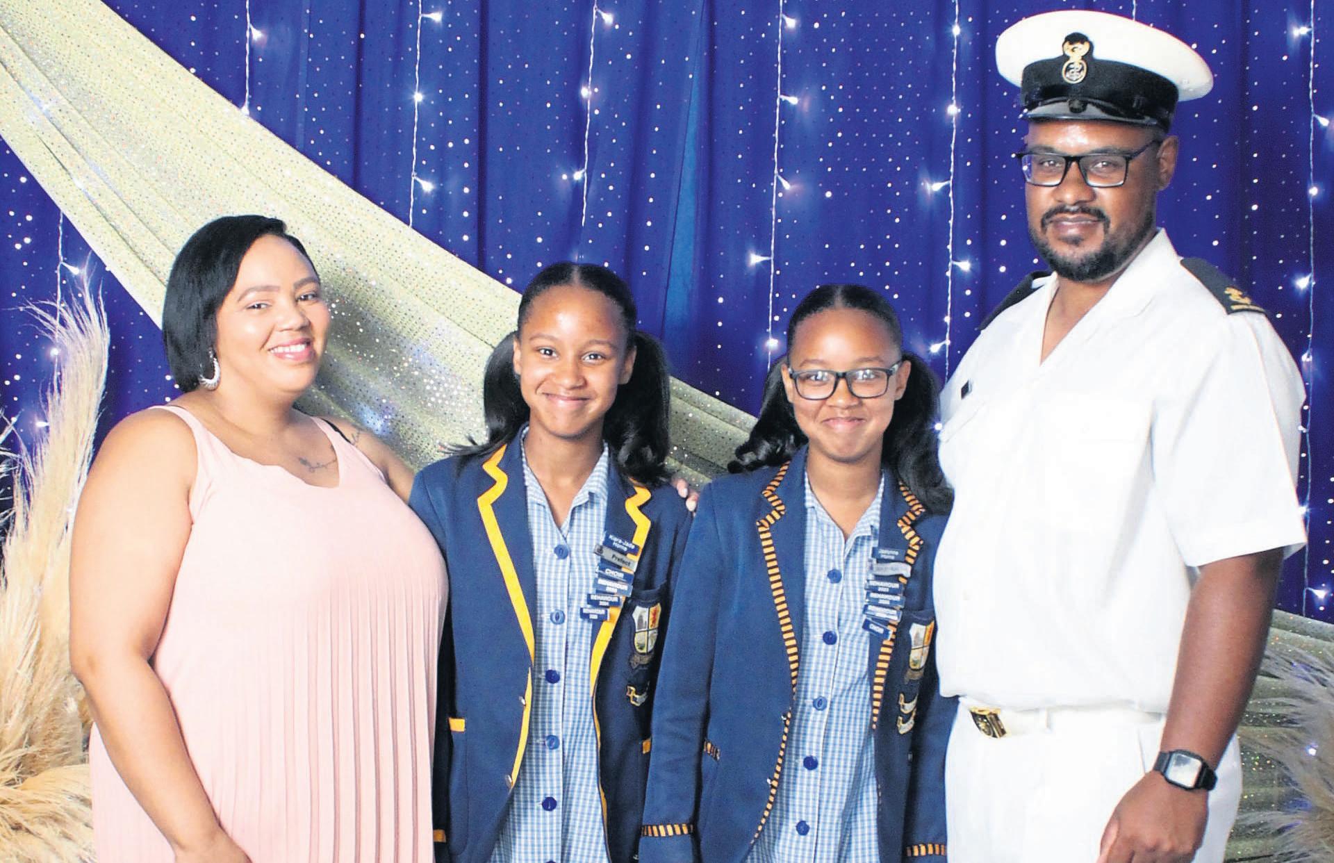 ThePrefectInductionCeremony of SusannahFourie Primary washeld on Monday,9 February. It wasanextra specialday for the Horne familyofDespatch as both of their twin girls were inductedas prefects. Theparentswere beaming withdoublethe joy and doublethe pride! The proudHorne family are:Kymazelle Horne,Kiara-JadeHorne (Prefect), Jaelynne Horne (Deputy Head Girl) andJPHorne PHOTO: SUPPLIED