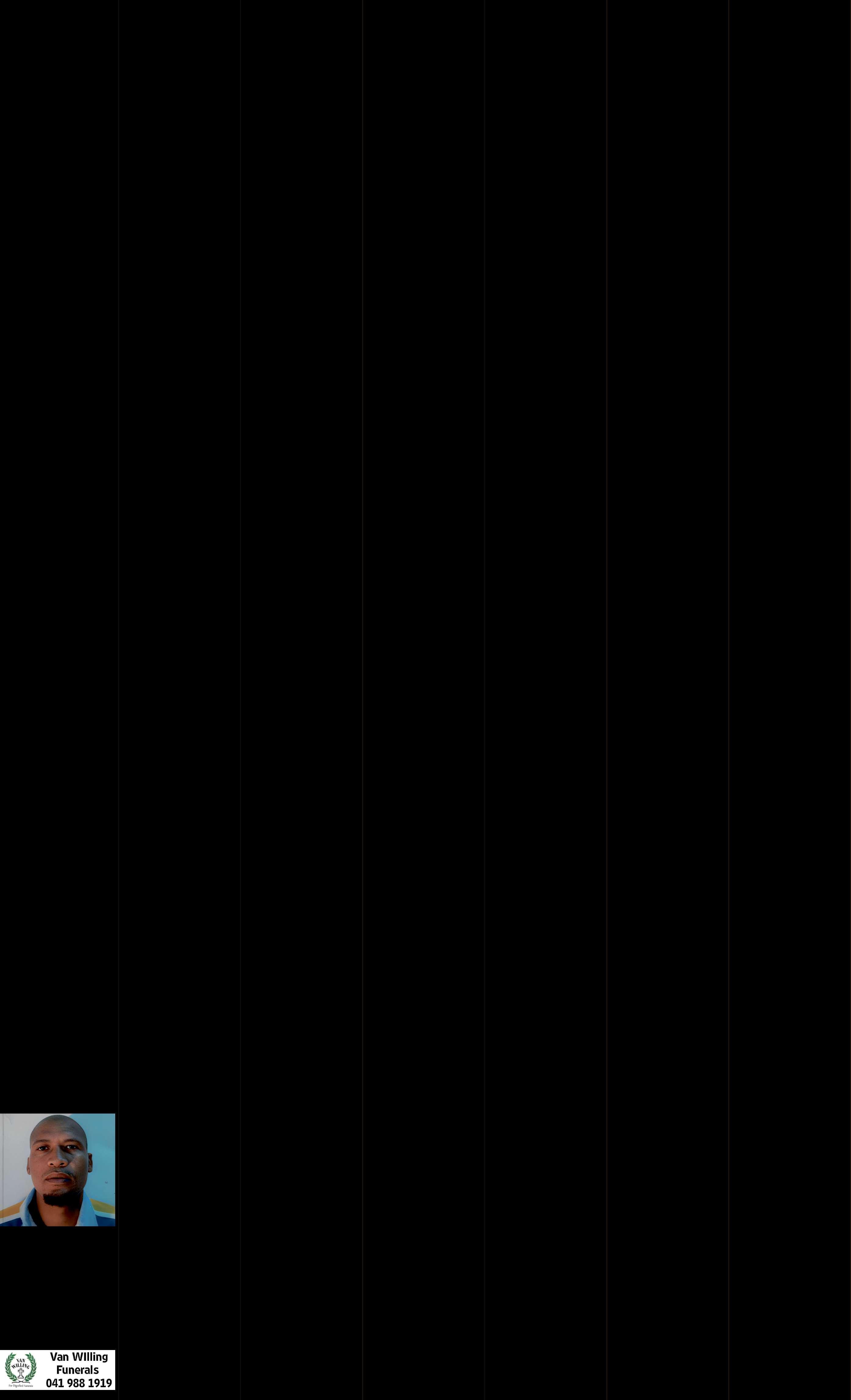 The funeral serviceof the lateMICHAEL (57yrs) will takeplace on Saturday,21/02/2026at 10 amfrom 33BOAHSTREET, BLIKKIESDORP, UITENHAGE. Deeply mourned by his familyand friends OOSKAAP BEGRAFNISDIENS 041 992 5704