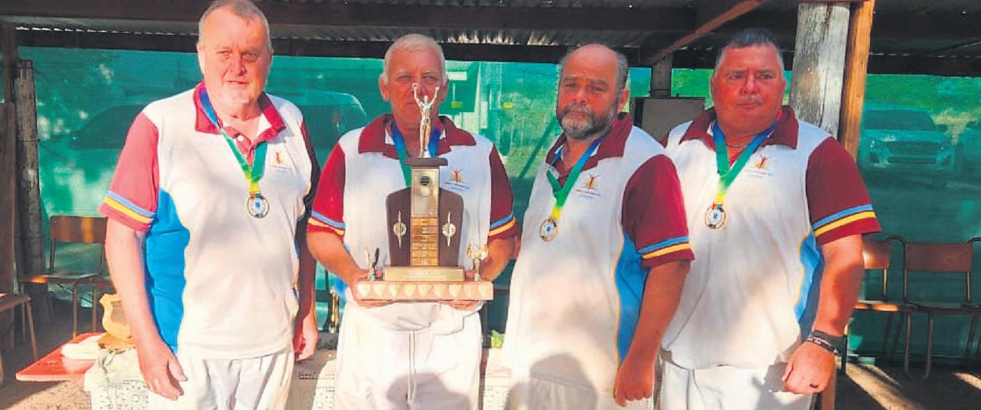 gewen Die A2-span(Retha Oosthuisen, Alewyn Smith, Hennie Oosthuisen en Johan Dumas) het vyfde geëindig, en die vroue span van die Wynarda van Eck,ErikaGerber,Susan Schoultz en ChristaHansen het dievierde plek behaal in afdeling B. In afdeling Dhet die span óók vierde geëindig. FOTO: VERSKAF
