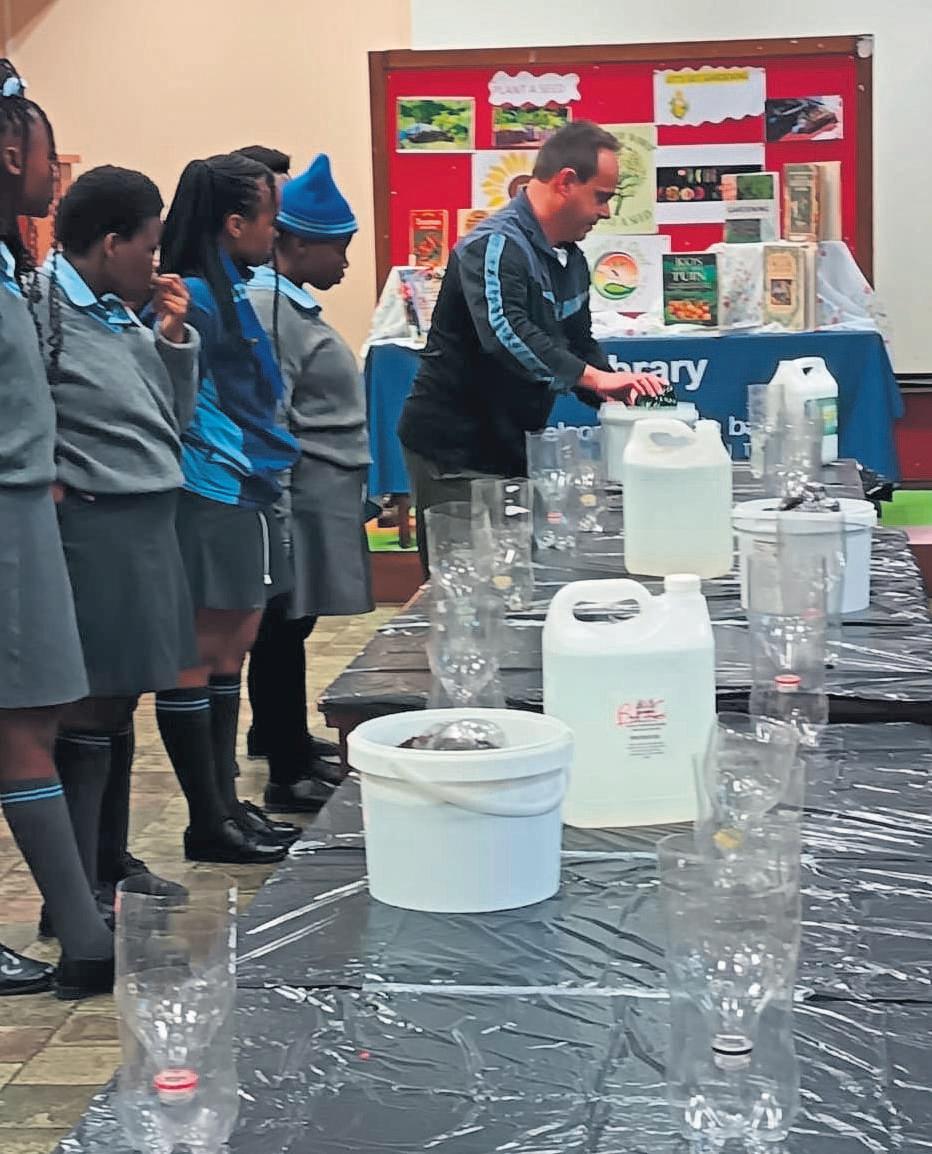 Limekhaya High School’s reading club, Better Read Than Not, joined the Uitenhage Library again for their latest programme The event took place at the Uitenhage Library Hall on 26 August and was themed ‘Garden in a Pot’ (also known as ‘Hydroponic Garden’). The library chose the theme as they were inspired to empower the future leaders to conserve land and promote food production as poverty rates escalate “Gardening isaskillthatcanbeutilisedtofight poverty and imparting these kinds of skills to learners is key,” said senior librarian Nompumelelo Ngcoko “Recycling was also highlighted by our theme as we used plastic bottles during our programme.” Limekhaya High School is based in kwa-Langa, Kariega. They were joined on the day by their educators Bongiwe Mtana and Babalwa Dlakubi.