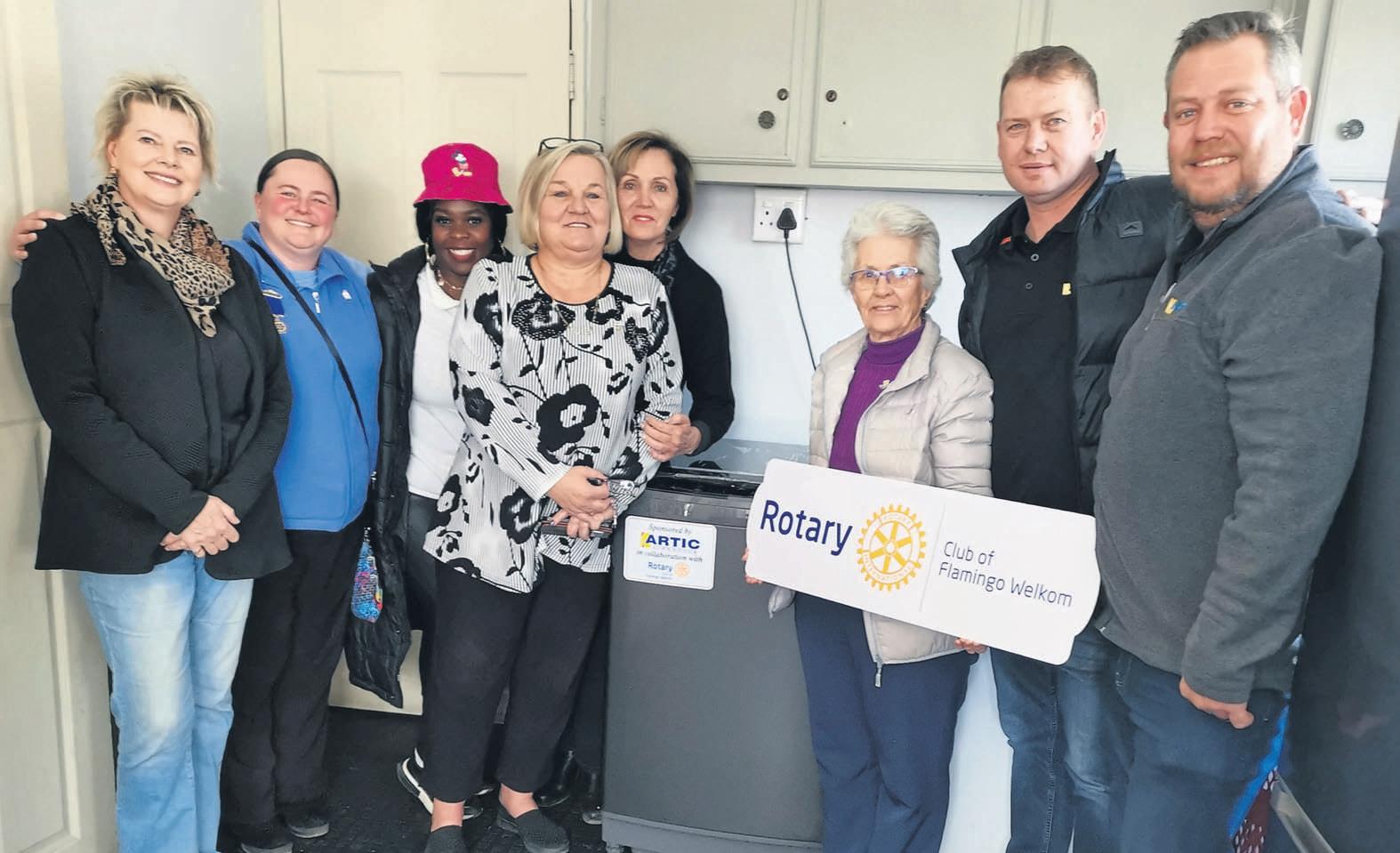 The Rotary Club of Flamingo Welkom,in collaboration with Artic Lifestyle,donated a washing machine to House of Hope From the left are Audra Visser (Flamingo Rotary),Vicki Harrison (president of Flamingo Rotary),Buli Vitshima (House of Hope),Anne-Mari Burger,Ianthe Muller,Jill Lombard (Flamingo Rotary),Rudi van den Berg and Anton Maree (Artic Lifestyle) Photo: Supplied
