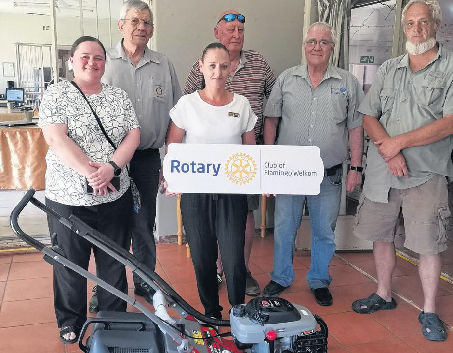 The Flamingo Rotary donated a washing machine and a lawnmower to Charlotte Moll Haven in Virginia on Tuesday 27 January. From the left are Vicki Harrison (Flamingo Rotary), Evert Demmer, Cathy Pretorius (Charlotte Moll), Ian Buchanan, Zack Lombard (Flamingo Rotary) and Riaan Erasmus (Charlotte Moll Haven).
