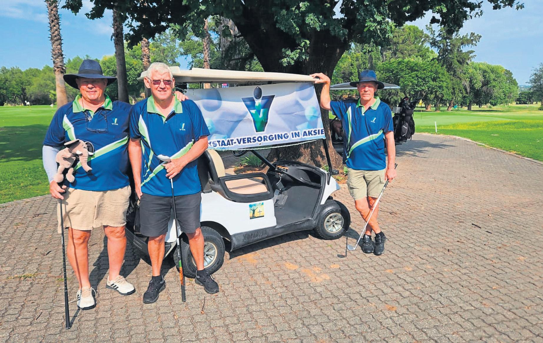 Op Donderdag 5 Februarie het die Vrystaat Versorging in Aksie Goudrif-tak (VVA) drie Goudvelders gehad wat die VVA in Welkom verteenwoordig het op ’n gholfdag by die Oppenheimer-gholfklub in Welkom. “Hulle het puik gholf gespeel en ons naam hoog gehou. Ons tak vier vanjaar ons 74ste bestaansjaar as ’n niewinsgewende organisasie wat maatskaplike dienste lewer in die Goudveld,” sê Joanita van Niekerk van die VVA. Van links is Piet Delport, Piet Steyn en Willem Koning. FOTO: Verskaf