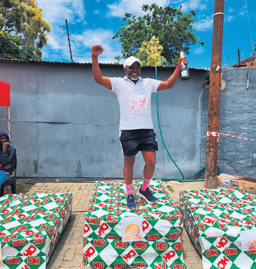 OK Grocer Theunissen and OK Foods Winburg hosted a cancer awareness race on 25 October in celebration of Moses Hlabahlaba and all the cancer survivors,while honouring the memory of loved ones who have lost their battle with cancer.The main race covered 34,4km,starting at OK Foods Winburg and finishing at OK Grocer Theunissen In addition,there was a 5km fun run,which took participants 2,5km out along the Winburg road and back to Theunissen The winners of the 34,4km were Edward Tlali (2:09,first), Piet Mpheteng (2:22,second) and Thabang Sekgapane (2:31,third) In the women’s category the winners were Inacia Maguire (2:49,first),Judy Mogorosi (4:40,second) and Nomvula Tlatsi (4:43,third) Pictured is Moses Hlabahlaba,cancer survivor