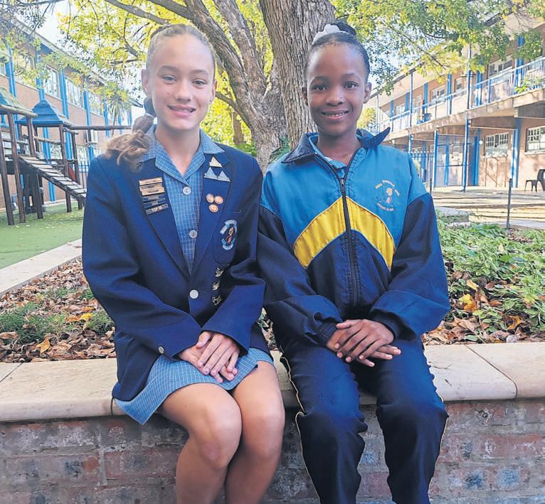 Twee leerders vandie Naudeville Primêre Skool in Welkom,Elle-Anne Roper en Amohelang Kolobi is in die o.12-Noord-Vrystaat hokkiespan ingesluit FOTO:Verskaf