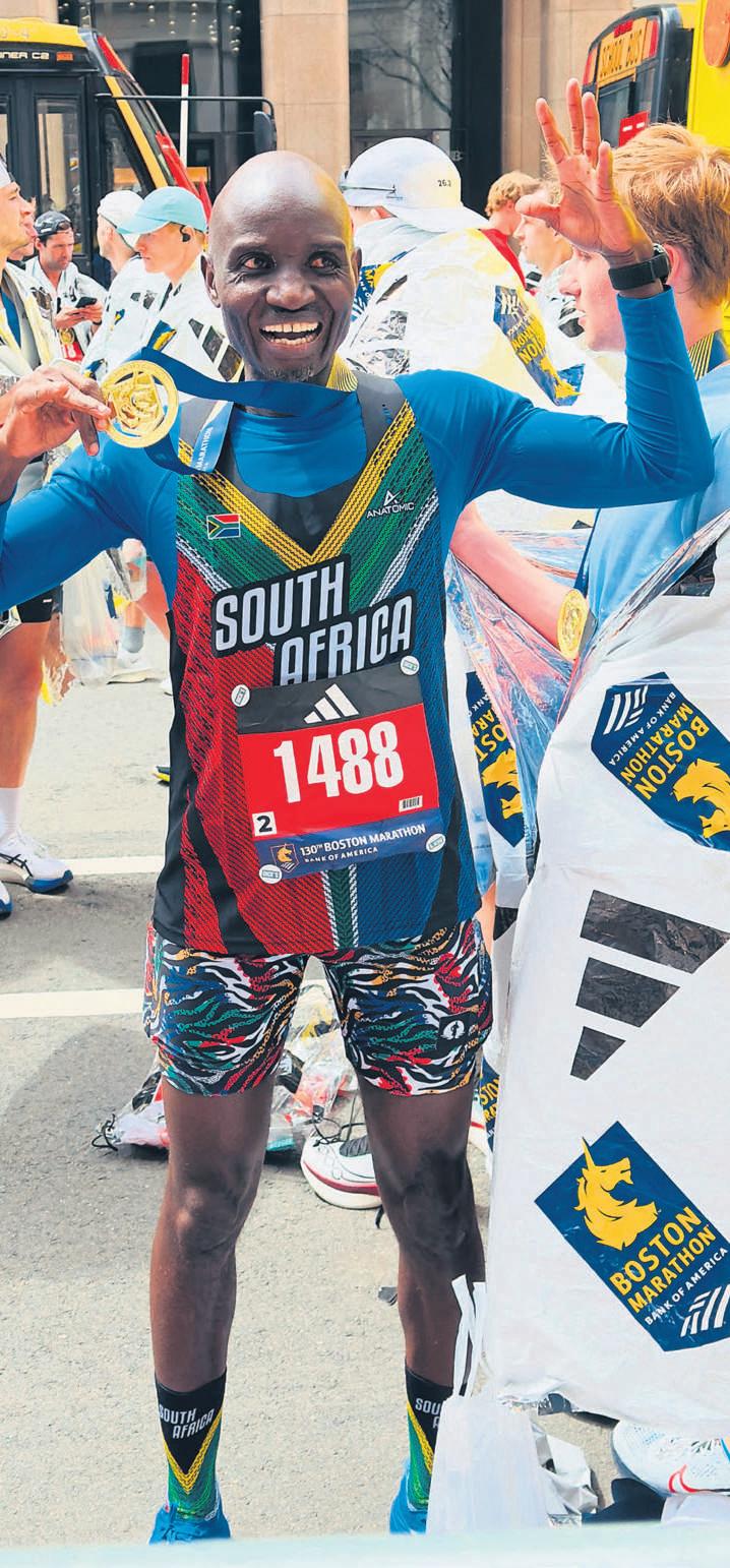 He says hisBostonrun wassustainedby the numerousencouragingmessagesfrom friends,family members,fellowmembers of the Welkom Runnersclub,his Team Vitality groupand the Sports4Ubuntucommunityin Englandthatstarted floodinginthroughout Sunday