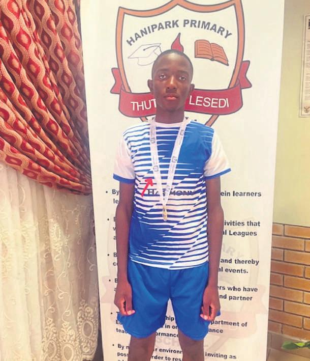 PrimarySchool in Thabong,obtained afirst position in the boys U13100 min SasolburgFreeState Athletics Competition thatwas held on 6and 7March.He represented the Free Stateon21March at the provincialcompetitioninCape town.