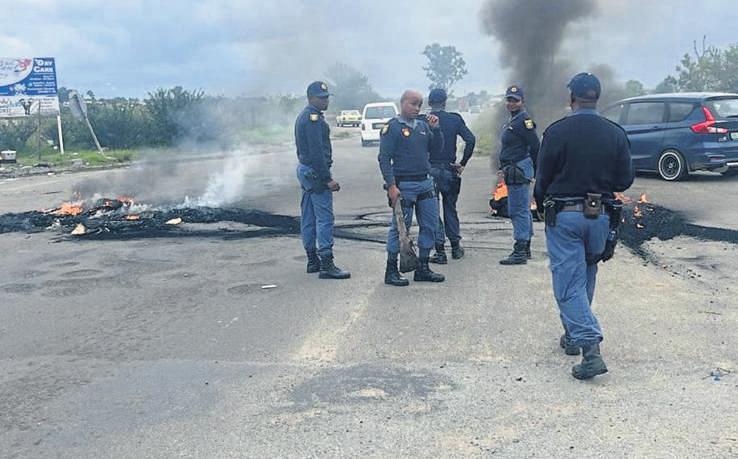 TheWelkomPublic Order Policing (POP) swiftly responded to protestaction near NewShaftin Virginia on Wednesday15April.Agroup of approximately100 communitymembers took to the street PHOTO:Supplied