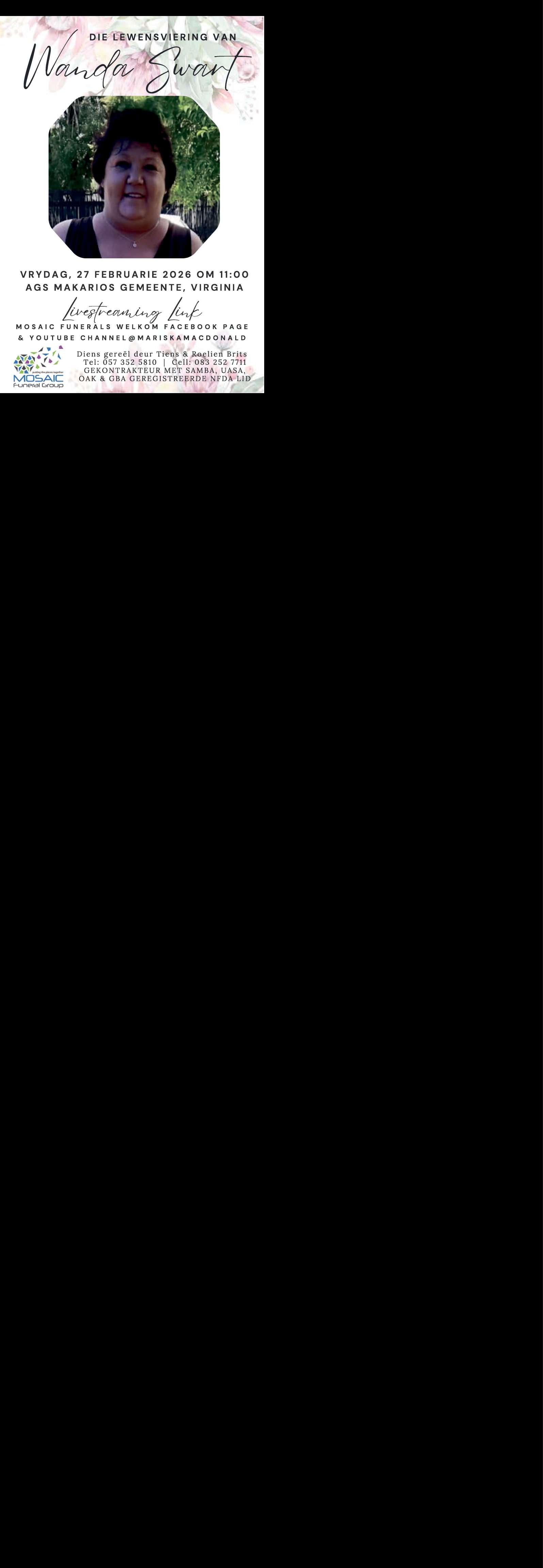 Creditors and Debtors are hereby requested to submit their claims and pay debts within aperiod of THIRTY (30) DAYS fromthe date of publicationofthis advertisement. SCHOEMAN KELLERMAN &KOTZE INC. P.O. BOX 419 WELKOM 9460 TEL: 057-3527241 (REF: NHAB/mm/25F4754)