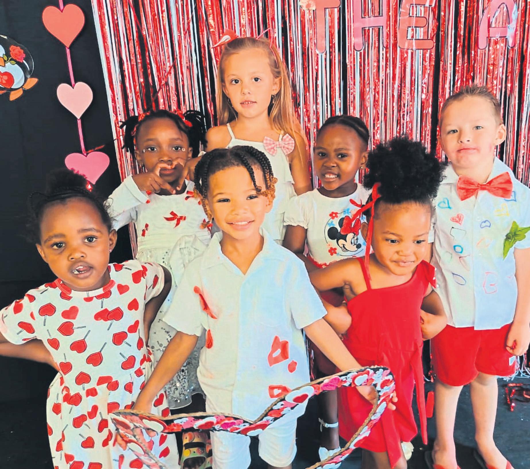 Die IsobelCooke-kleuterskool het die maand vanliefdegevier op 13 Februarie.Die kleutershet in rooi en wit getooi parade geloop en hulleouers het komkyk hoe spoggerig hul lyk.Daarna is die ouers en kleuters trakteer met ’n kolwyntjie en koeldrank.Vanlinksis,voor:Milani Dini, Tyrique Britz en KagisoSebate; agter: Hlompho Moreboli,ZanliViljoen,BoipeloPhakoe en Ryan Harmse