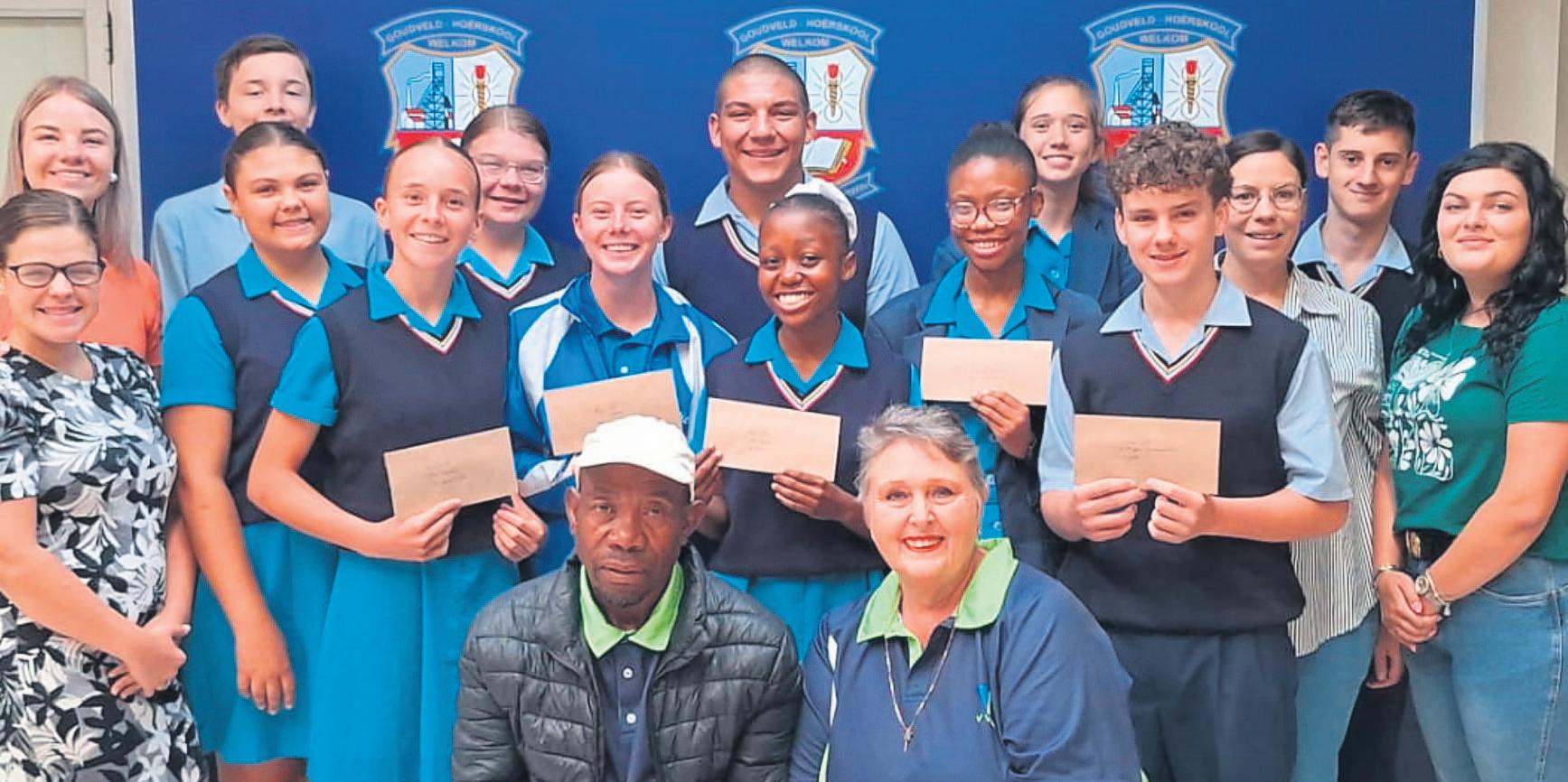 Joline Delport vandie VVAWelkom (Vrystaat Versorging in Aksie) het op 17 Februarie ’n gedigte-projek by Goudveld-Hoërskool aangebied. Altesaam 49 gr 10-leerders het deelgeneem. Leerders ervaar eneksperimenteer met die liefde, soms werk dit uit en soms werk dit nie uit nie,dit laat dan ’n gevoel vanverwerping.Op die foto is die wenners en hulle klasonderwysers,vanlinks, voor: Andries Mokoena (VVA)enJoline Delport (VVA);middel: LuanéFourie,Mia Harmse, Nia-Mari Joubert,Elri Coetzee,NéNale,PaballoMoekoa,Rayen Bauermeister,Juf. Madelein KnoetzeenRenateBotha; agter: Riani Briel,Christopher Karsten,Anika Oelofse,Miguél Farinha,Tithiny Grové en Zeïn Bogërshauzen