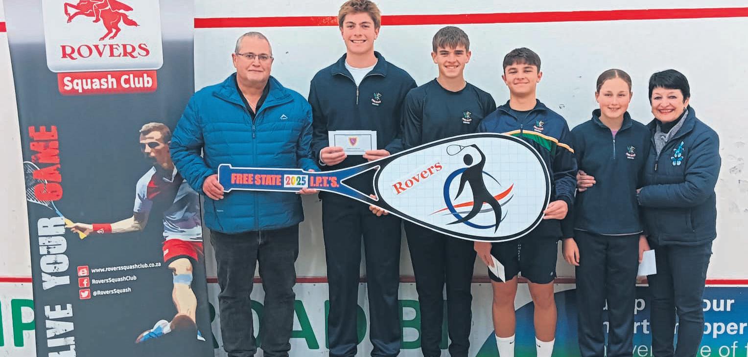 These players of the Rovers Squash Club will represent the Free State in the upcoming interprovincial tournament for schools.The tournament will be held throughout South Africa,and the Welkom players will be playing in different venues across the country From the left are Dickie van den Berg (chairman),Dean Katzin, Johan Naude,Joshua van Zyl,Kaitlin Saayman and Shirley Bothma (coach)