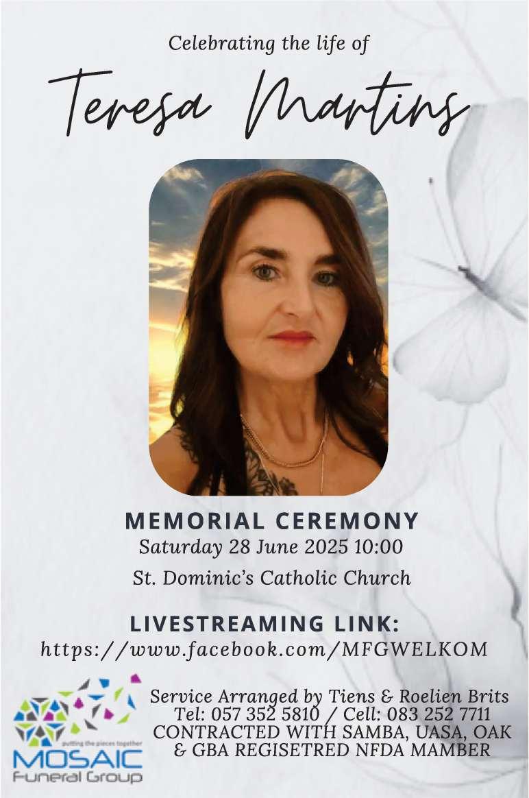 Identity Number 521022 0076 08 7 Married out of community of property in respect of certain ERF 615 WESSELSBRON EXTENSION 4, DISTRICT WESSELSBRON, PROVINCE FREE STATE IN EXTENT 1366 (ONE T H O U S A N D T H R E E HUNDRED AND SIXTY SIX) SQUARE METRES which has been lost or destroyed. All interested persons having objection to the issue of such copy are hereby required to lodge the same in writing with the Registrar of Deeds BLOEMFONTEIN: F R E E S T A T E a t BLOEMFONTEIN within two weeks from the date of the publication of this notice. Dated and signed at BLOEMFONTEIN on 18 June 2025