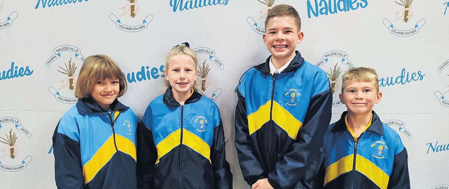 Ses leerlinge aan die Primêre Skool Naudeville is ingesluit in die Lejweleputswa-landloopspan wat op 9 Augustus aan die Vrystaat-kampioenskapsbyeenkoms in Bloemfontein gaan deelneem Van links is Marnu Strydom (o.9),Ronah Mpofu (o.10),Elle-Anne Roper (o.11),Quinne van Staden (o.12) en Linmari de Lange (o.12). Afwesig: Dianq Badenhorst (beginner)