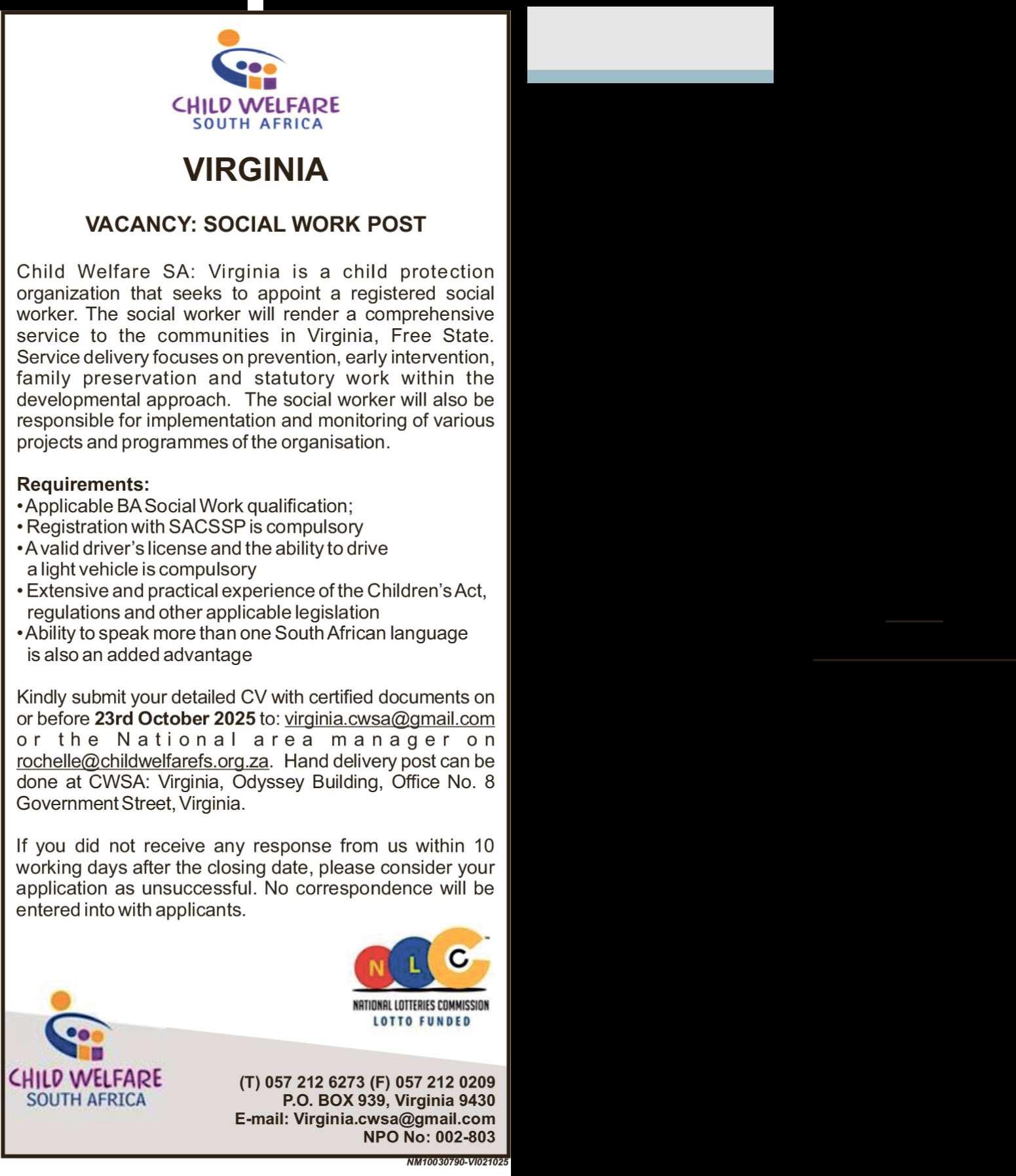 Debtors and Creditors of the abovementioned estate are required to lodge their claims and to make payment at the office of the executor mentioned below within thirty (30) days from date of publication hereof. SIGNED at VIRGINIA on this 25TH day of SEPTEMBER 2025.