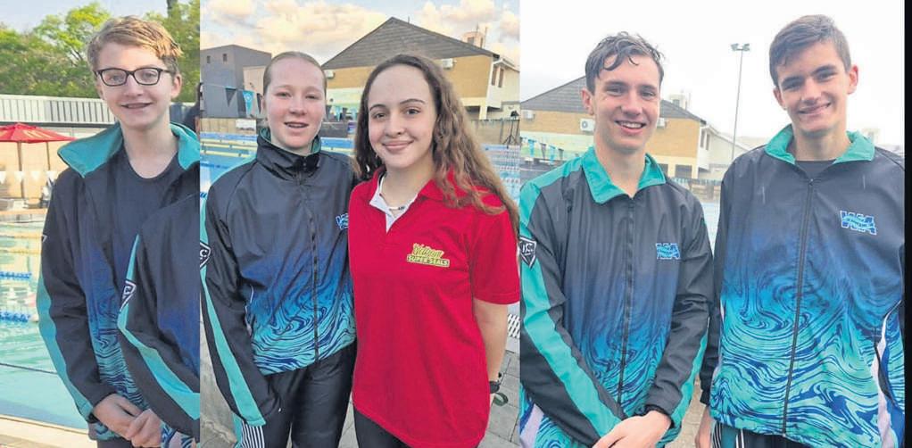Vyf swemmers van Welkom-Gimnasium het deelgeneem aan die Pelicans-gala in Bloemfontein op 26 en 27 September Al het dit onophoudelik gereën,het niks die swemmers gekeer nie Van links is Jano Bezuidenhout (een 8ste,een 9e en twee 11e plekke),Ashley Seymour (een 2e,twee 3e,een 4e en drie 5e plekke), Shyenne Laubscher (een 2e,twee 3e, twee 4e,een 5e plek),Drake O’Tool (vier 1e plekke) en Dirk Vermaak (twee 8ste plekke) Foto: Verskaf