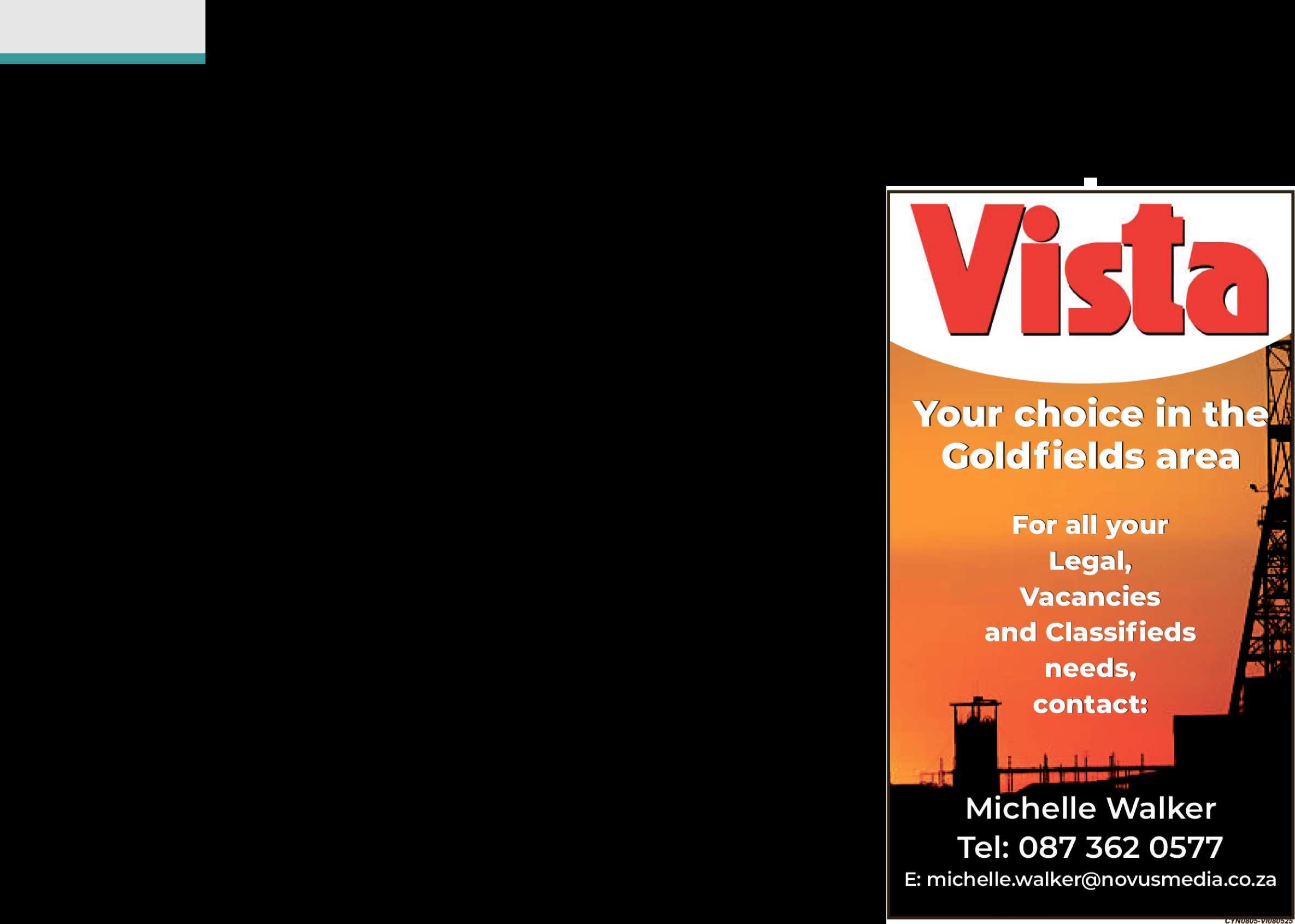 Kennisgewing van die tweede vergadering van skuldeisers ingevolge Artikel 129, 179 en 182 van die Maatskappywet 1926 en Artikels 339, 366, 375 (5) (b) e n 4 0 2 v a n d i e Maatskappywet 1973, word hierby kennis gegee dat die persoon hieronder genoem, as Likwidateur aangestel is en dat persone wat aan die boedel verskuldig is, hul skuld onmiddellik aan die Likwidateur moet betaal. Die tweede vergadering van skuldeisers sal op 25 Junie 2025 om 10:00 by die Welkom Magistraat gehou word: