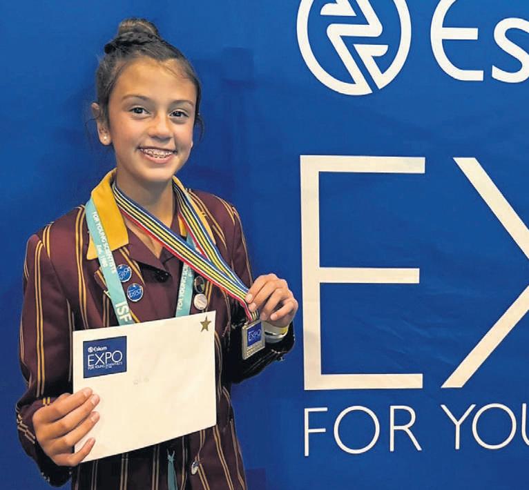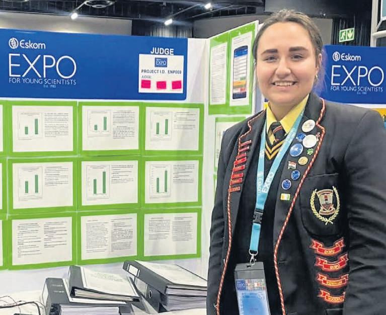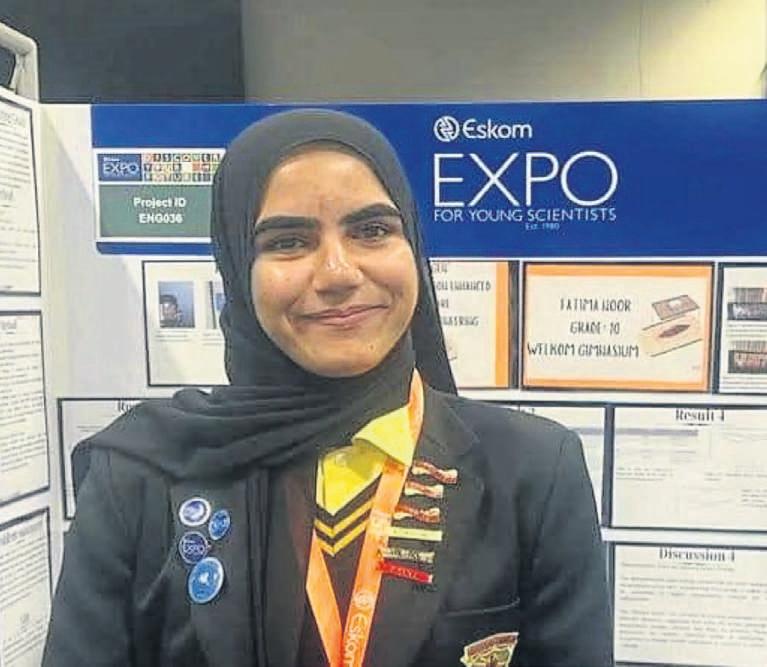 Leila Eramus van die Welkom-Volkskool het uitstekend gevaar op die 45ste Eskom Expo International Science Fair (ISF) Sy het goud vir haar projek, “Learning ability,music and your brain”ontvang Sy is ook aangewys as wenner van die Wits-Edinburgh Sustainable African Futures-eerbewys.Die expo is van 6 tot 10 Oktober by die konferensiesentrum by Emperors Palace in Kempton Park gehou Foto: Verskaf