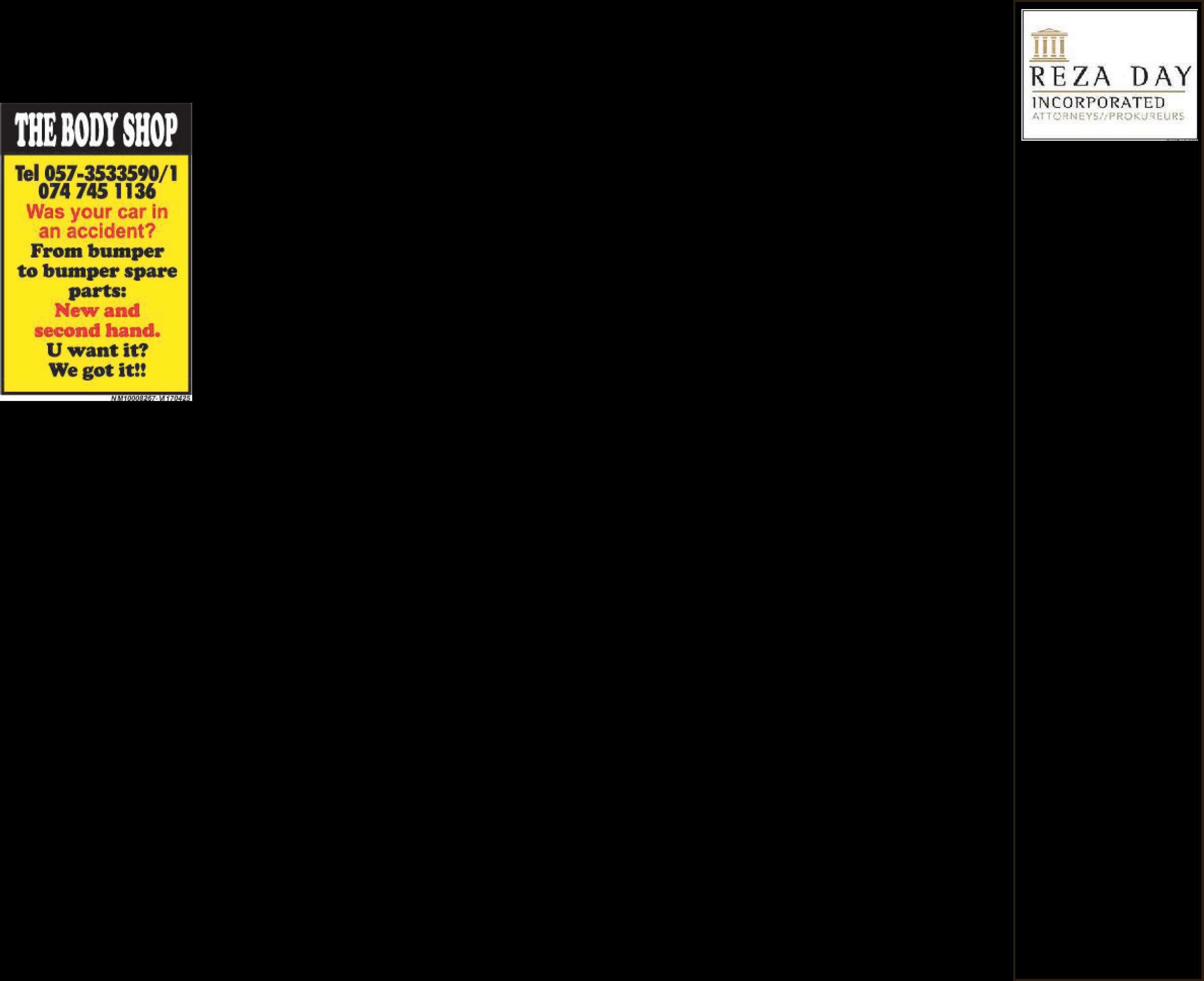 ADVERTISER E-MAIL: boedels@recona.co za ADVERTISER TELEPHONE: 057 3525806