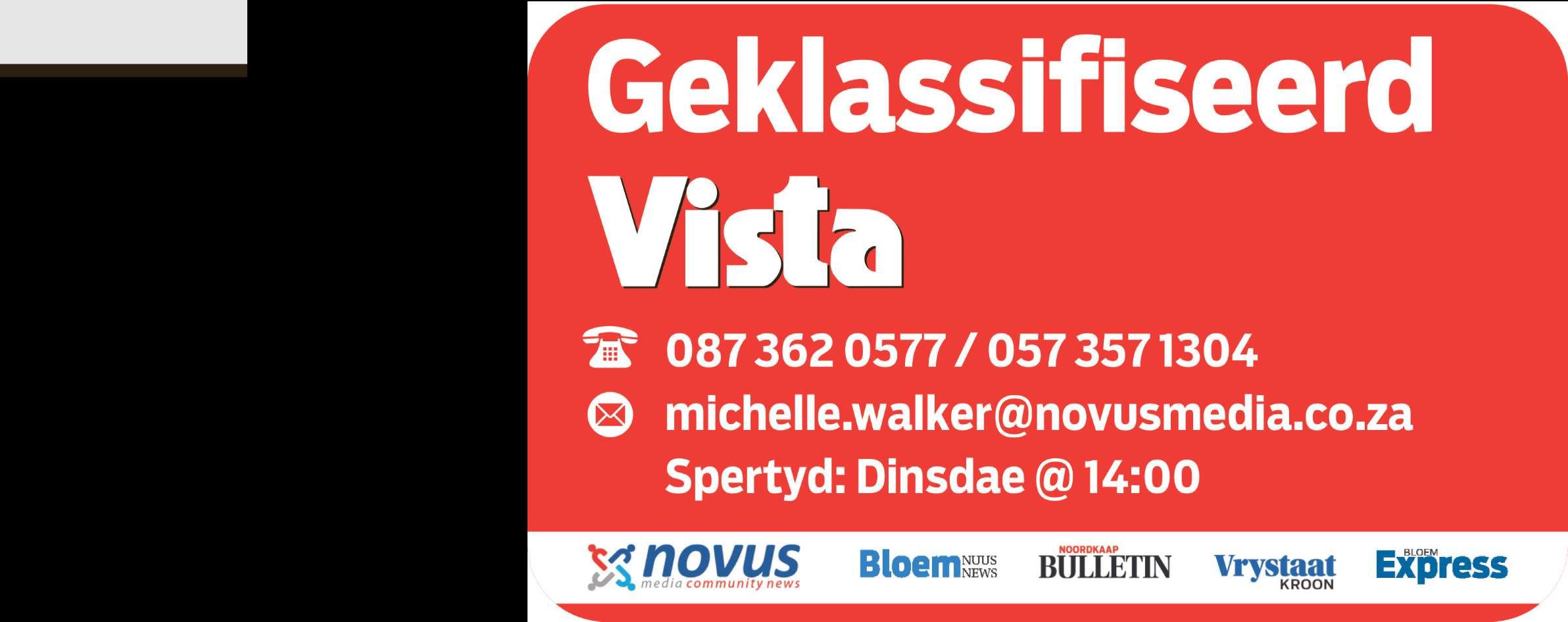 Hierdie onligting word gratis in Vista se dagboek geplaas Stuur inskrywings met inligting, asook kontakname en -nommers, na marti will@novusmedia co za
