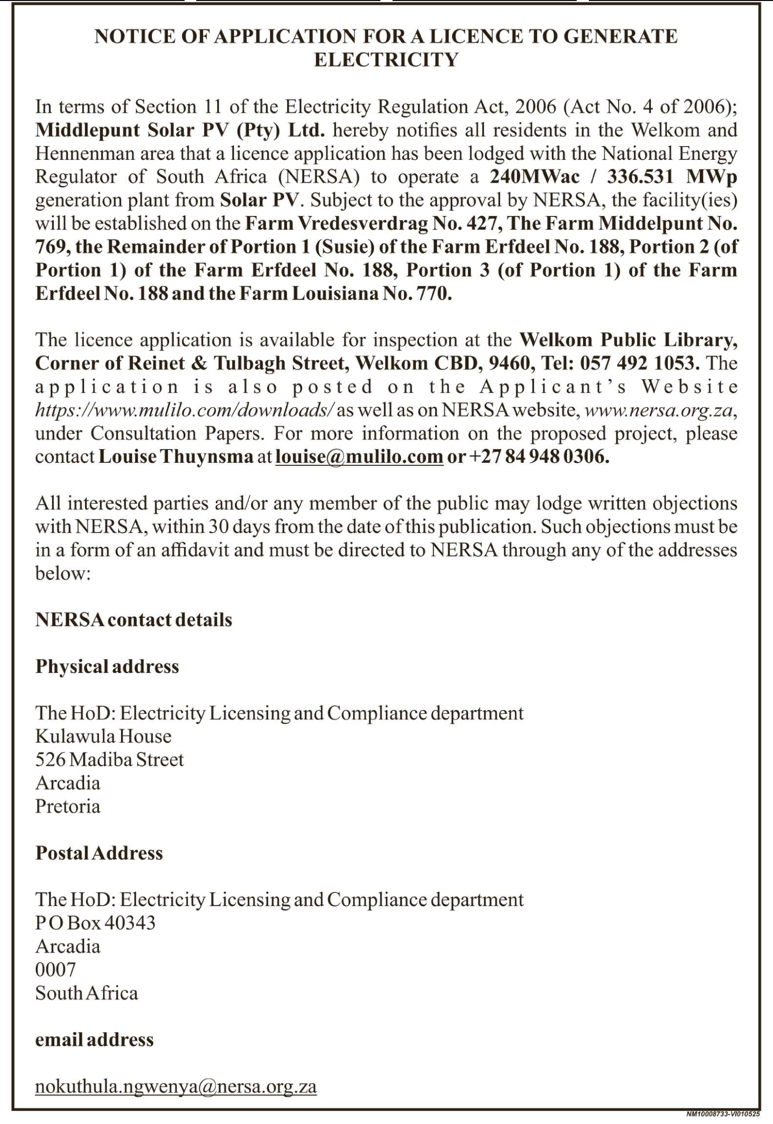 E-MAIL: virginia@piethaas.co.za (REF: MR HAASBROEK/ NR/BM0079)