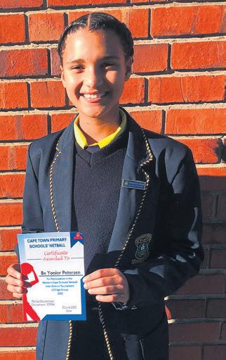 leerder aan Saxon Sea Primêr, is gekies om van 16 tot 19 Julie aan die Kaapstad Laerskole Interdistrikte-netbaltoernooi in Riversdal deel te neem. Sy speel ook vir die o.13-span van die skool, wat einde Julie in Limpopo aan die SA skolenetnetbaltoernooi gaan deelneem.