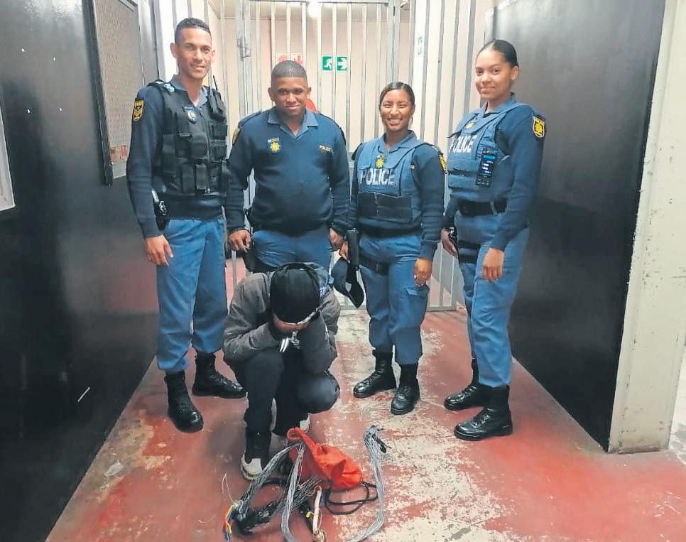 “On spotting the police vehicle he tried to flee, but was caught in possession of stolen electrical cable,” Capt Lisa Munro, police spokesperson, confirmed. She said it was discovered the cable, valued at R15 000, was stolen from Robinvale High School during a break-in that morning.