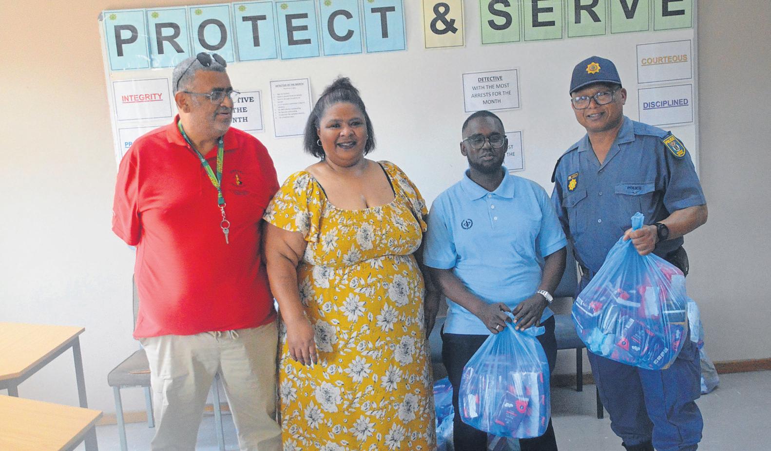 Die Atlantis-polisie se Men for Change en die Suid-Afrikaanse Polisiediens se Vrouenetwerk het die sanitêre doekies wat Moses ingesamel en gekoop het, op Dinsdag 30 September aan 20 skole, insluitend Vaatjie Primêr, oorhandig.