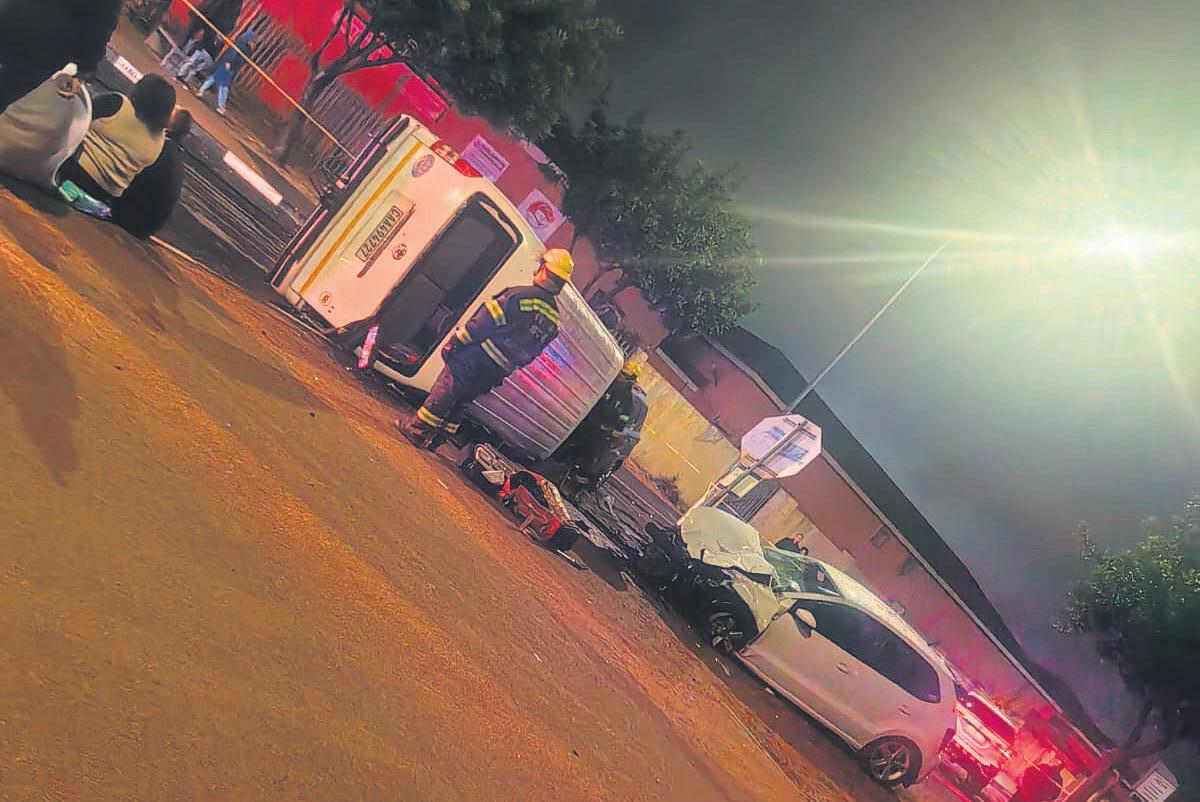 Volgens die getuie was ’n minibustaxi vol werkers net besig om die kruising oor te steek toe die Polo teen ’n vinnige spoed aankom. Dit het die taxi só hard getref dat dit omgeslaan en op die sykant tot stilstand gekom het. Die taxi het ook teen die getuie se stilstaande motor gebots.