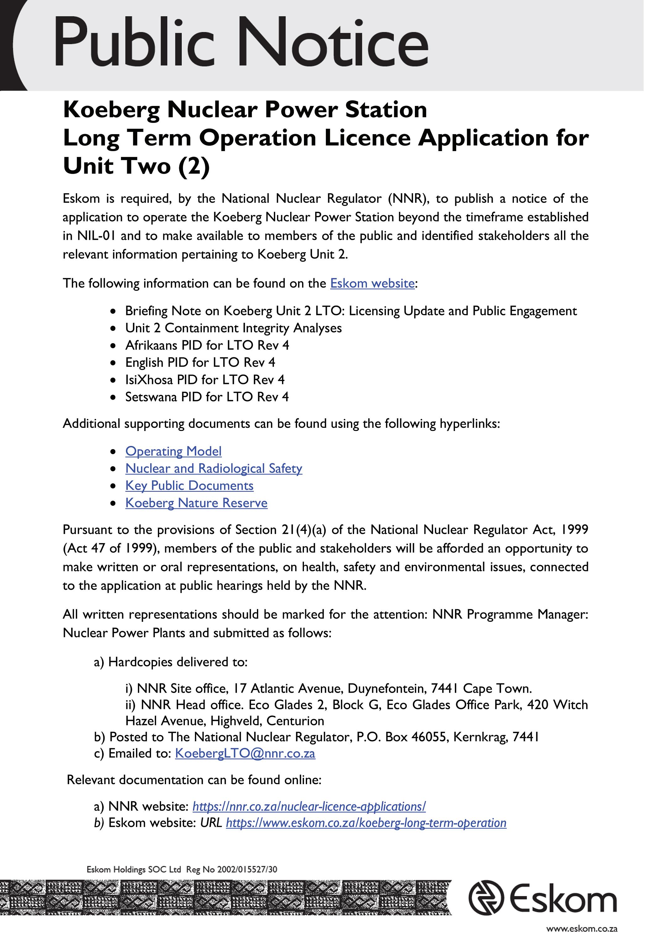 N a d i e s l u i t i n g s u u r s a l d i e t e n d e r s i n d i e p u b l i e k oopgemaak word. Enige of die laagste tender sal nie noodwendig aanvaar word nie.