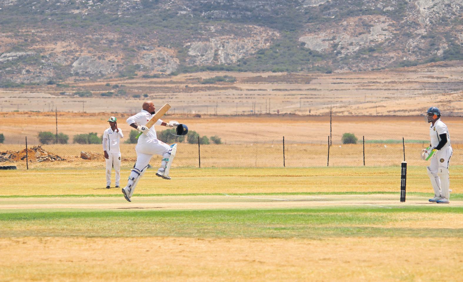 AB Henkelman vandie Darling-krieketklubspring vanopgewondenheid nadat hy ’n 100-talteen Hopefield Wanderersgemoker het.Hyisuiteindelikmet sy telling op 140uitgevang. Foto:David Rossouw