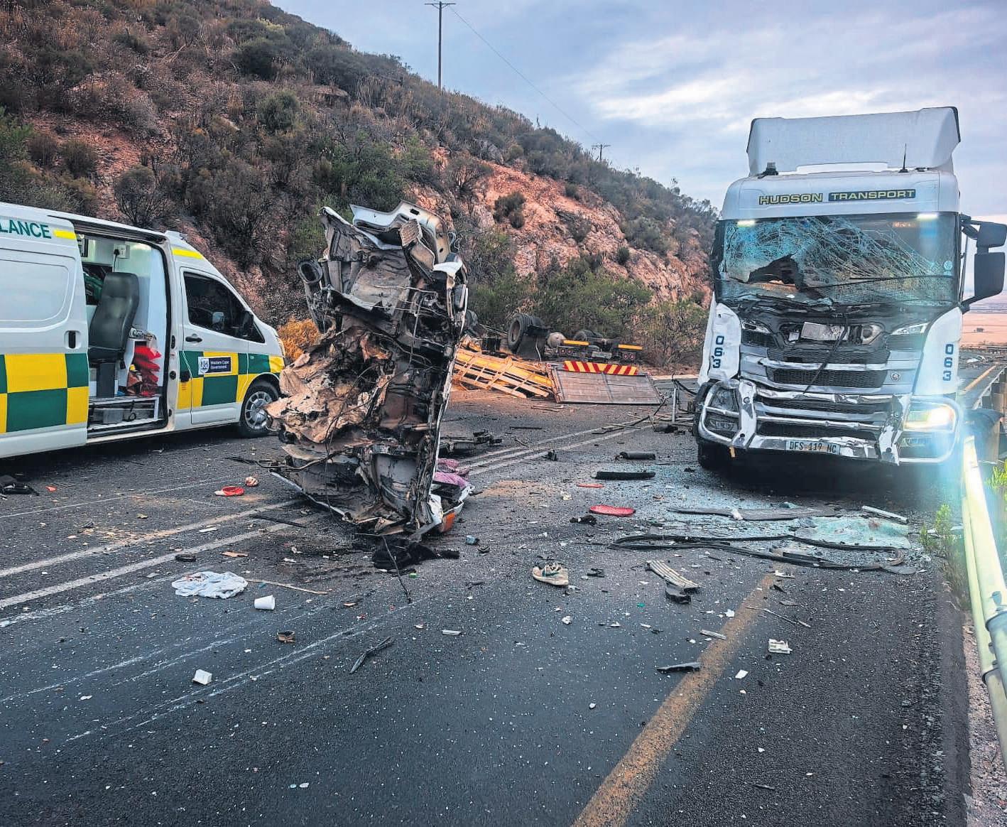 ’n Tragiesebotsing op diePiekenierskloofpas het op Sondag8Februarie omstreeks05:45opdie N7 plaasgevind. Volgens kapt.Tania Helfrich, ’n woordvoerder vir die Weskus-polisie,het twee voertuiereg van voor gebots. Die bestuurder vandie Scania-vragmotor het aan die polisie vertel hy wasvan Piketbergafop padnaCitrusdal. Toehyom’ndraai vandie paskom, het hy ’n witIsuzu-bakkie gesien watomgeslaan oor diepad geskuur en regvan voor teen sy voertuig gebots het.Albei insittendes in die bakkie is op die toneel dood. Dit is bevestig dat dieinsittendesnie vandie Weskusstreek wasnie,maar vandie Noord-Kaap