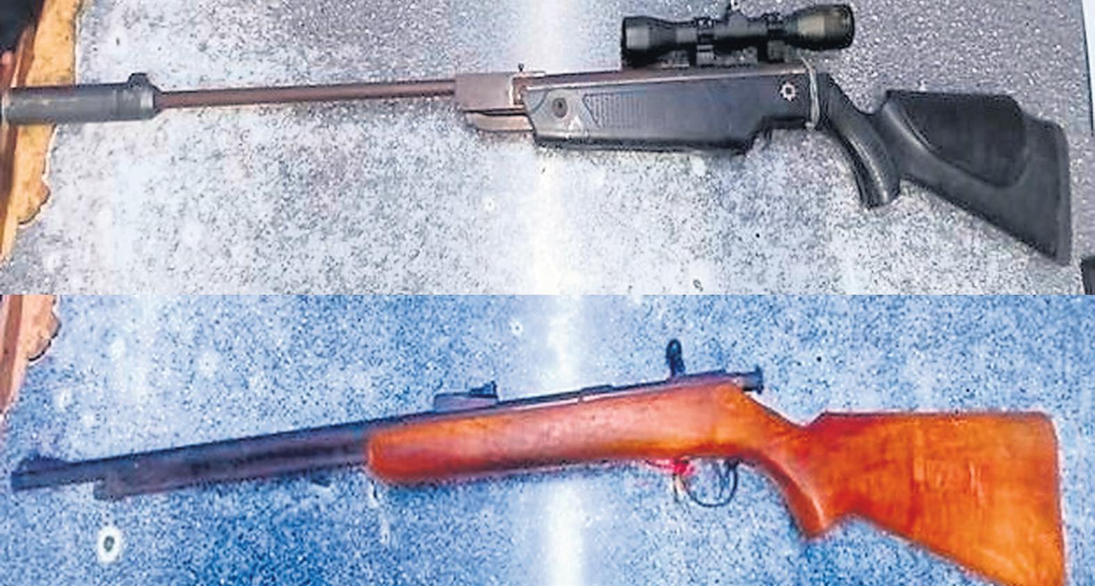 A .22 rifle and air rifle with a scope and silencer (above) were found abandoned in St Helena Bay on Saturday night during a crime prevention operation. Please contact the police on 022 736 8060 if you have any relevant information. Photo: SAPS