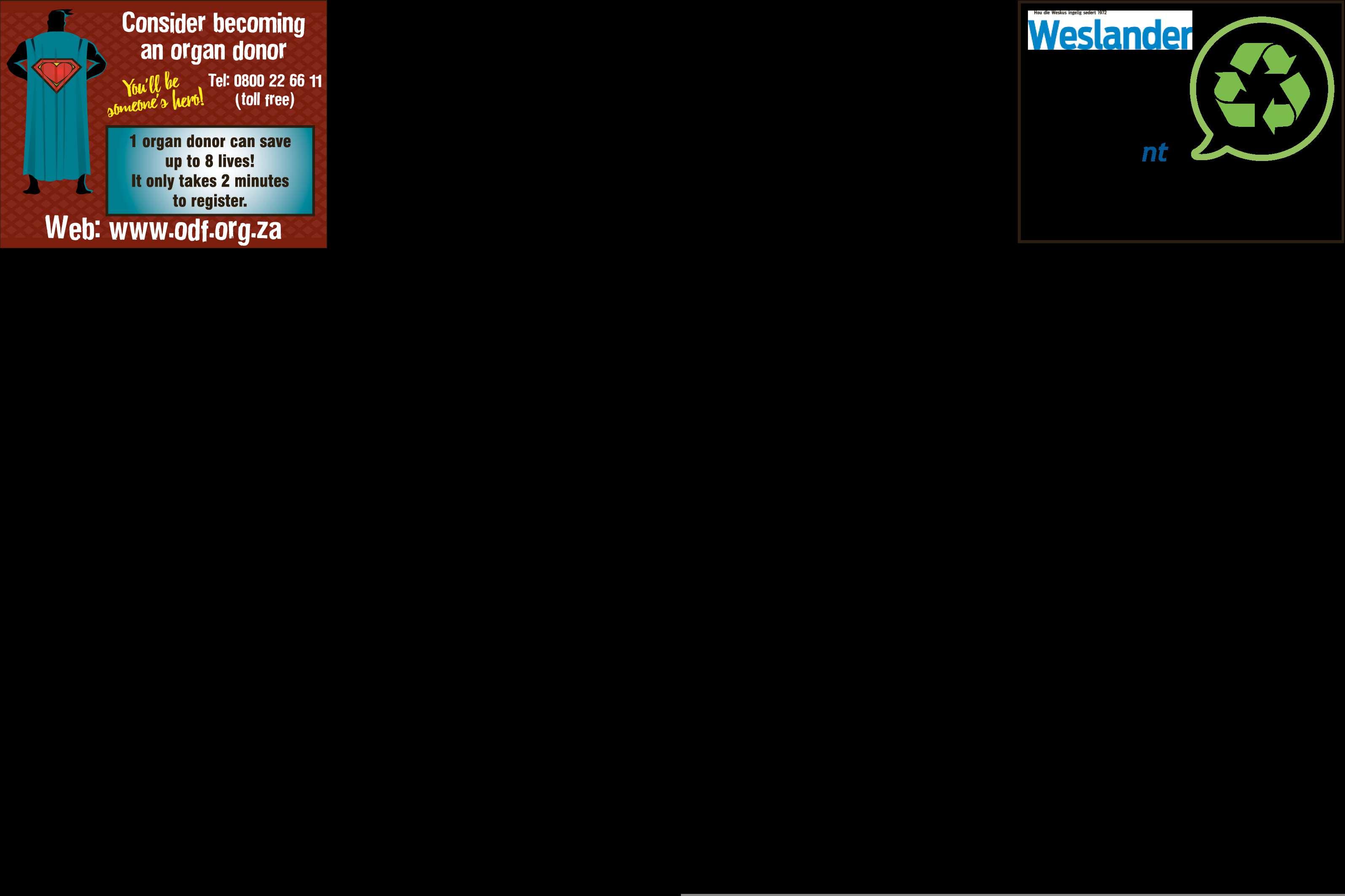 Vandag se uitgawe is ’n historiese oomblik vir Weslander –dit is die laastekoerant wat ná 54 jaar se getroue Donderdagverkope by betaalpuntebetaalbaar is. Sedert sy ontstaan het Weslander week ná week op Donderdae verskyn en deel geword van die Weskus se storie, en ons gaan hier bly, maar van volgende week af word die koerant gratis versprei. Lees meer oor dieredes virdie verandering in die Redaksionele Kommentaar op bl.8