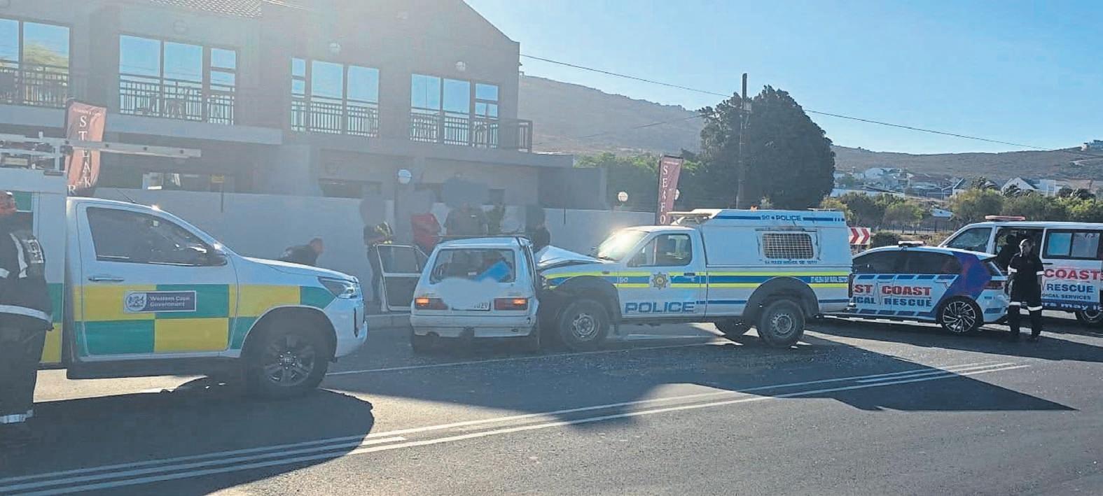 Die ongeluk het op Dinsdag20Januarie omstreeks 17:30 plaasgevind toeJan regsindie hoofpad in die dorp metsywit VolkswagenGolf ingedraai en ’n polisievoertuig daarteen vasgeryhet.
