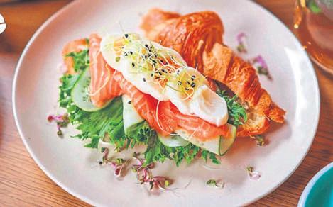 Lovely smoked salmonwith a croissant.