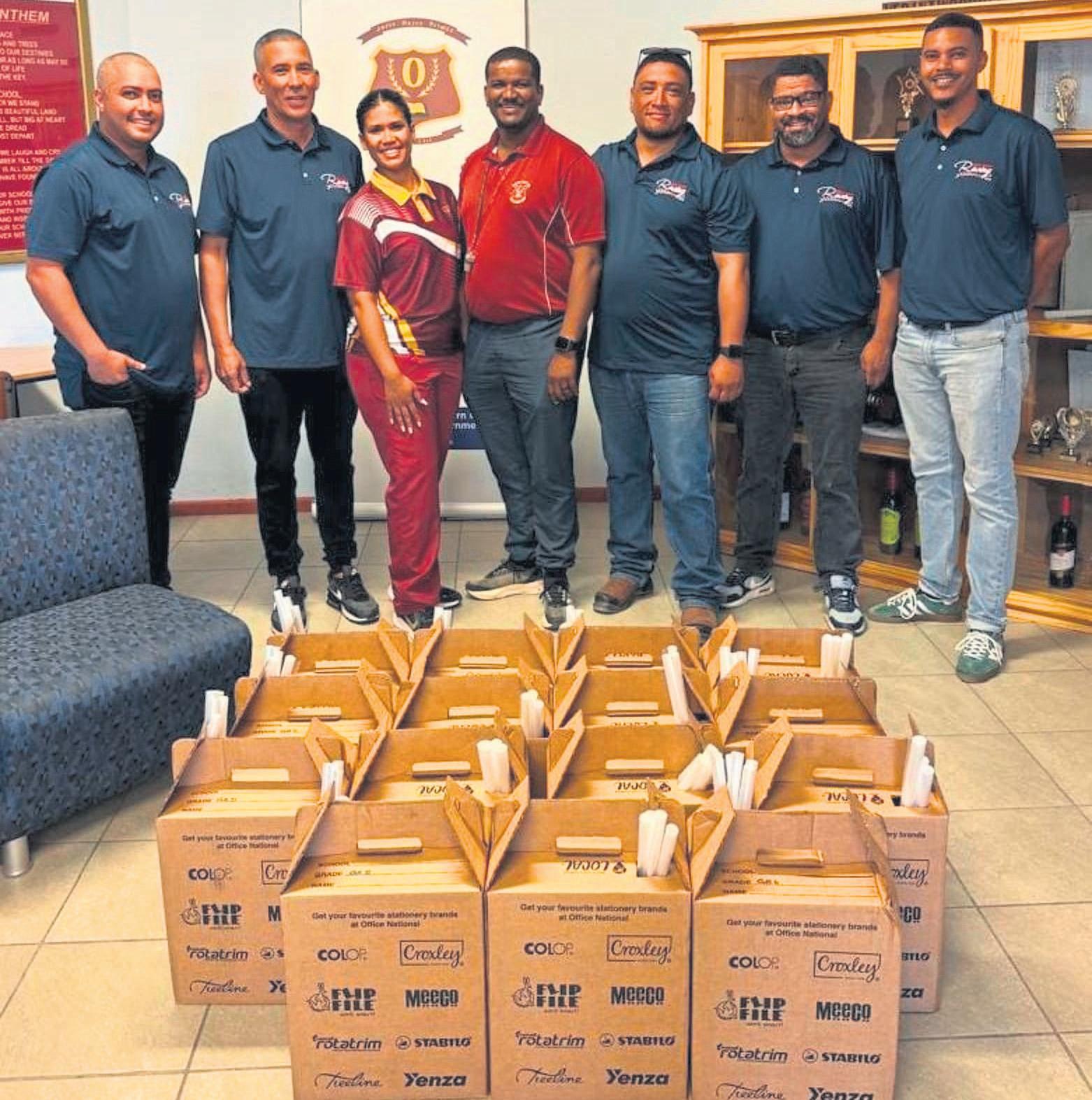 Jurie HayesPrimêr het West Coast Racing vir die skenking vanskoolskryfbehoeftes aan hul leerders bedank. “U bydrae word waardeer en salons leerders geweldig bevoordeel,”het die skool bygevoeg.Niven vanOordt, GrantSteenveld,Jannikevan Schalkwyk (onderwyseres), Yves Damon (onderwyser),Nathaniel September, Oswald BantamenAshwinFebruarystaan by die bokse volskenkings.