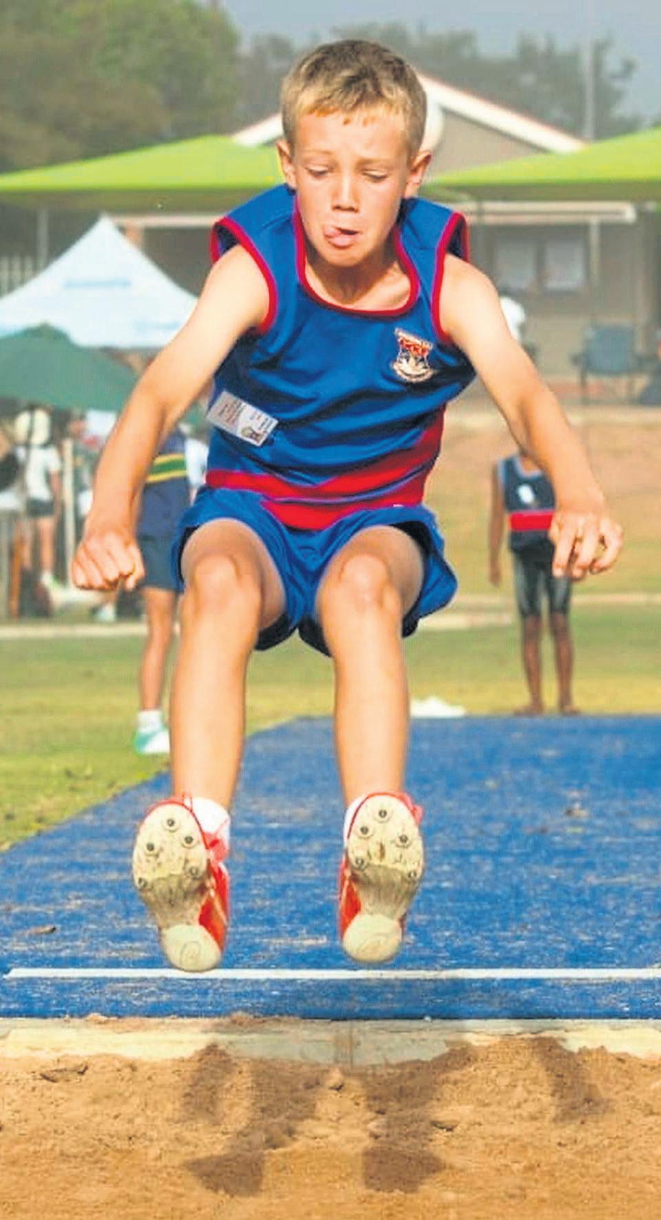 ’n Leerling volenergie land perfek ná ’nverspringsprong, een vandie hoogtepuntevan die Vrydagbyeenkoms op Vredenburg se sportgronde Foto’s:Sonja Kruger