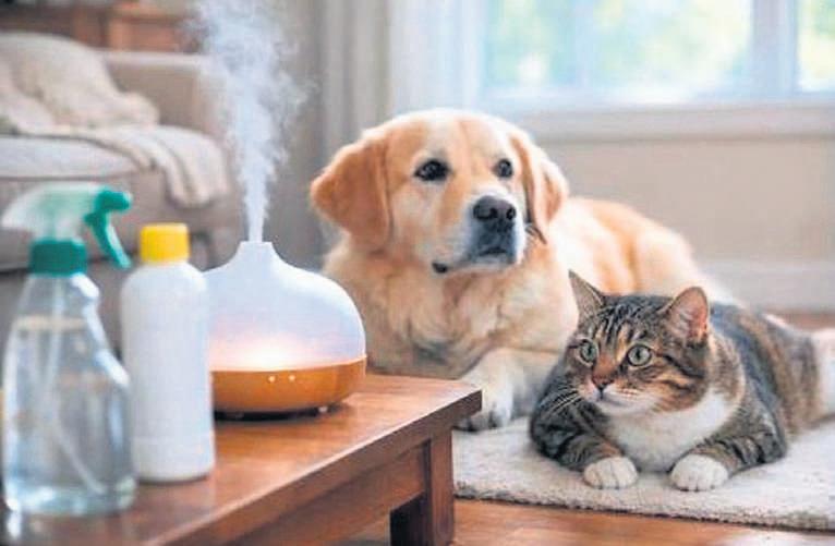 Geurverspreiders en essensiëleolies word al hoe meer gebruik, maar houernstige gevare in, veral vir katte en klein honde.Olies soos teeboom, bloekom, laventel, peperment en sitrus is hoogs gekonsentreerd en kangiftig wees wanneer ditingeasem, ingesluk of deur die vel opgeneem word. Die fynmis kan op pels neersakenlater ingelekword. Simptome sluit lusteloosheid, bewing,braking en asemhalingsproblemein. In klein, swak geventileerde huise kanhierdie dampe vinnig gevaarlikraak. Menslike medikasie is nog ’n algemene oorsaak van noodsituasies. Pynstillers,