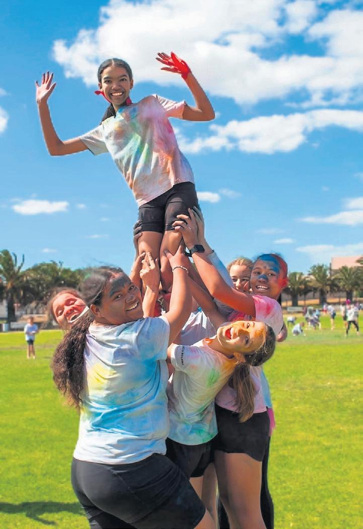 Ayva Louw word omhoog gehou deur Allysa van Greunen, Skyelar Brown, Marie van der Merwe, FaithLynn van Boven en Caryn Irion. Foto’s Sonja Kruger