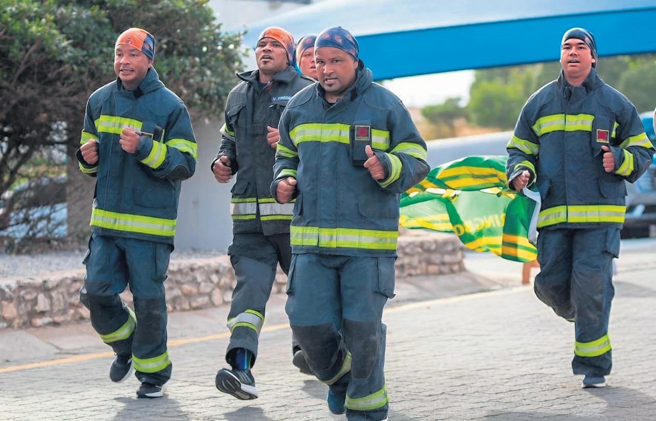 Die brandweerspan het die wedloop in volle gewaad afgehandel.
