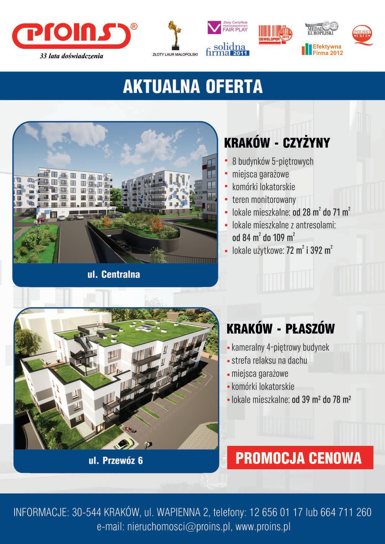 ul. Wapienna 2, 30-544 Kraków tel. +48 12 656 01 17, +48 12 664 711 260 nieruchomości@proins.pl, www.proins.pl deweloper Property Group Sp. z o.o., Rynek Pierwotny