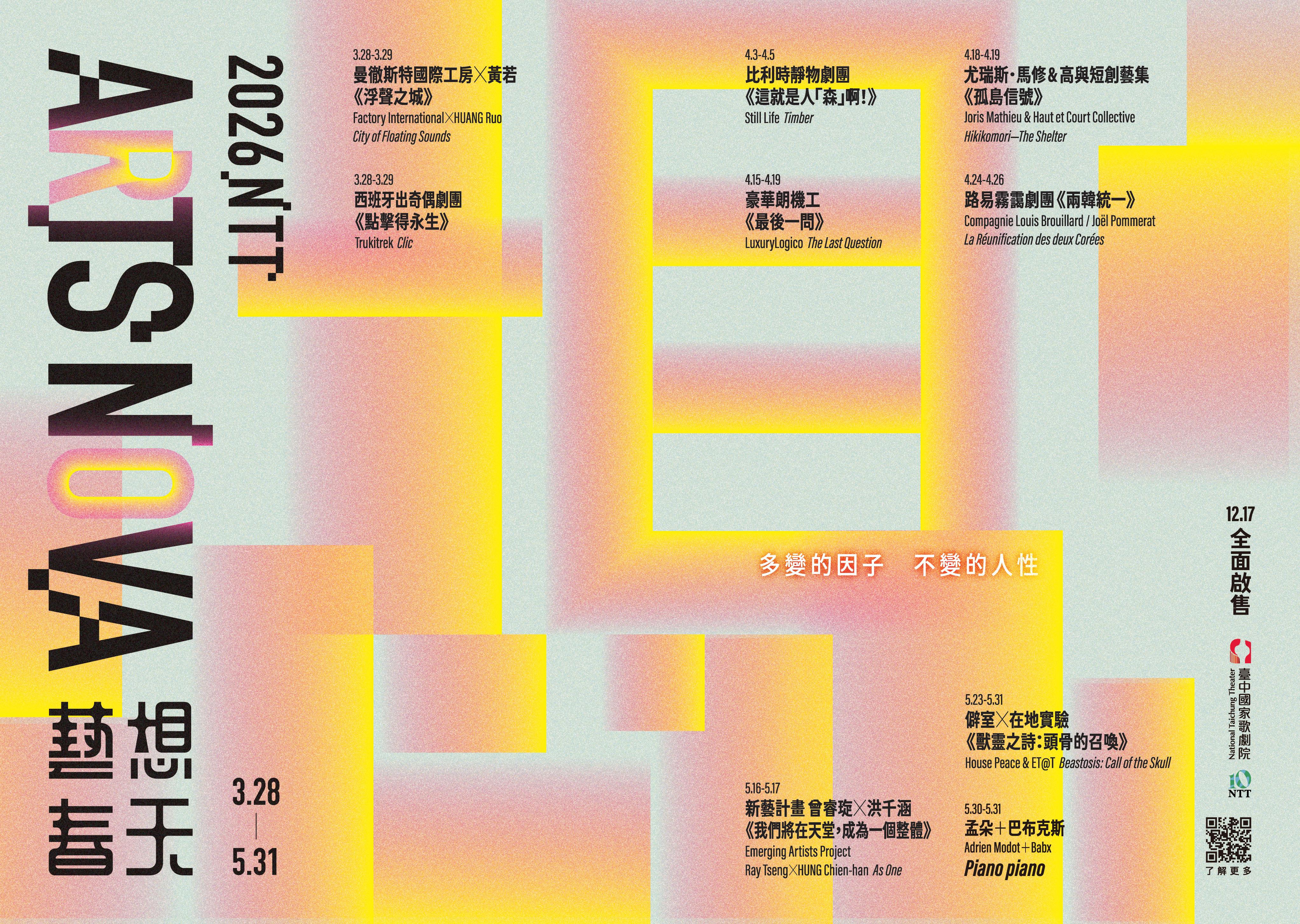 丙午迎春,臺中國家歌劇院已搭建好 與藝術文化喜相逢的橋梁,在傳統與創新 交會的技藝中傳遞祝福,邀請你「一馬當 先」來感受人味情味濃厚的饗宴。