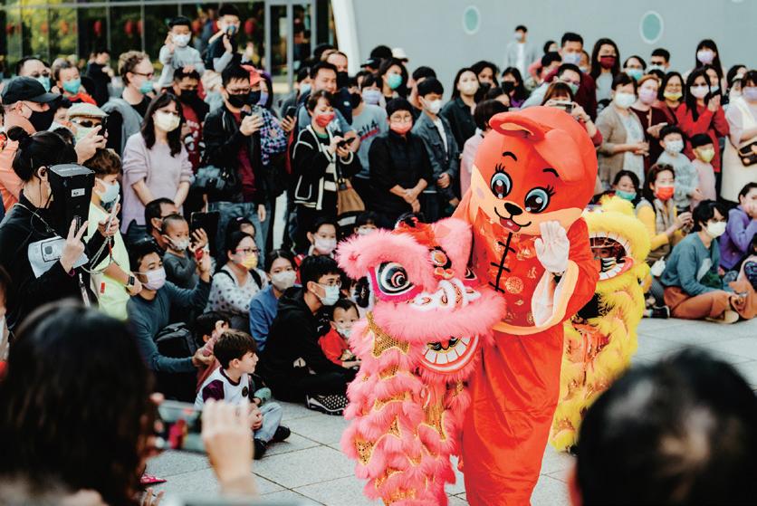 咬,全場樂開懷;2023 年,專屬設計「兔 寶寶造型」的醒獅頭,讓人耳目一新; 2025 年更找來「蛇年布娃娃」,賦予蛇 的可愛新意象。
