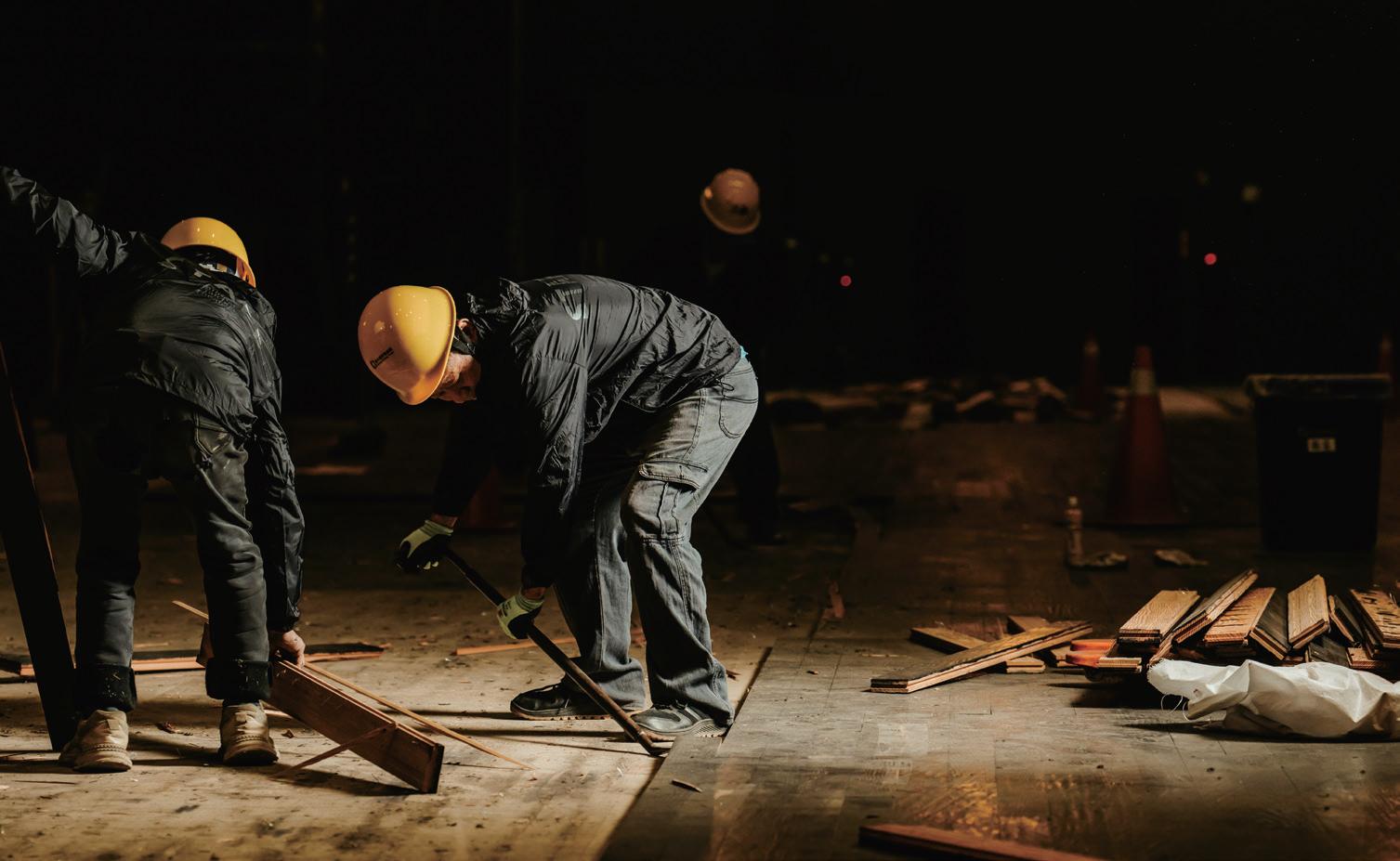 當團隊決定更新大劇院地板,全面改 採夾板結構;合作廠商的選材、漆料研發 與上漆工法,也支持著這個變革。廠商提